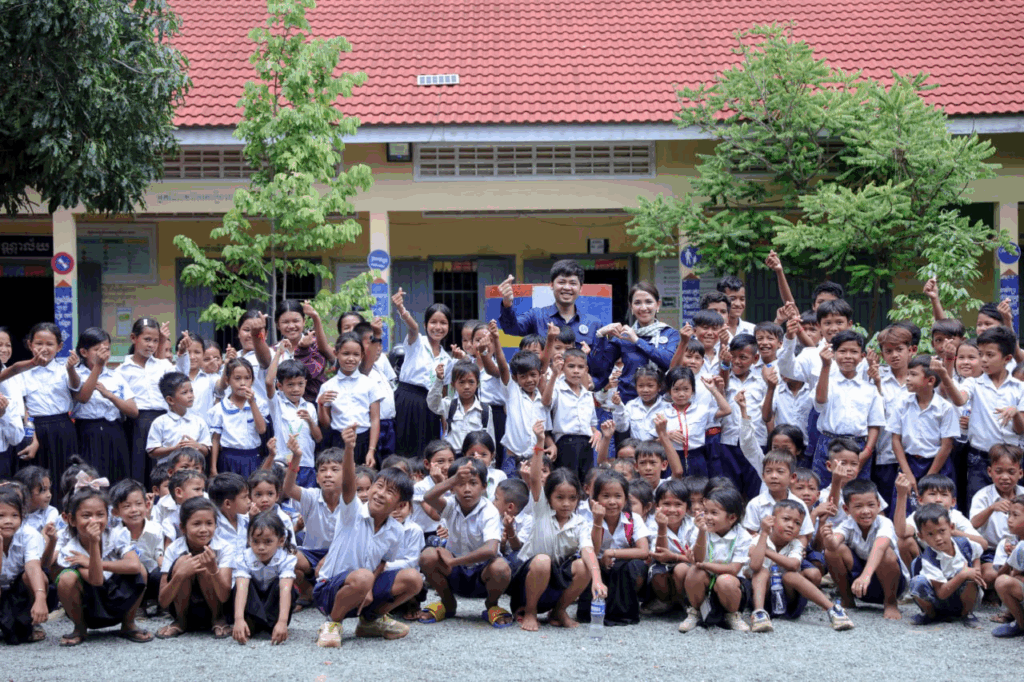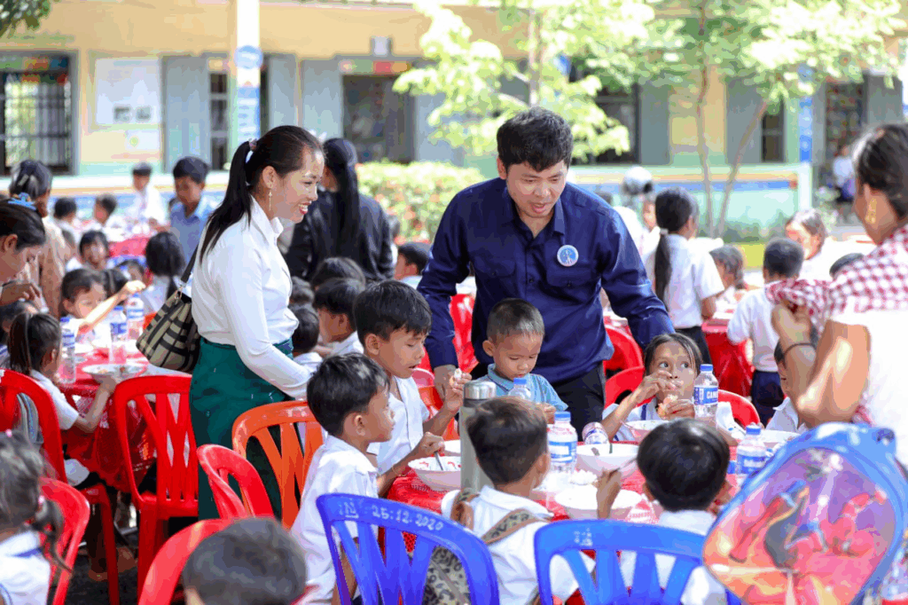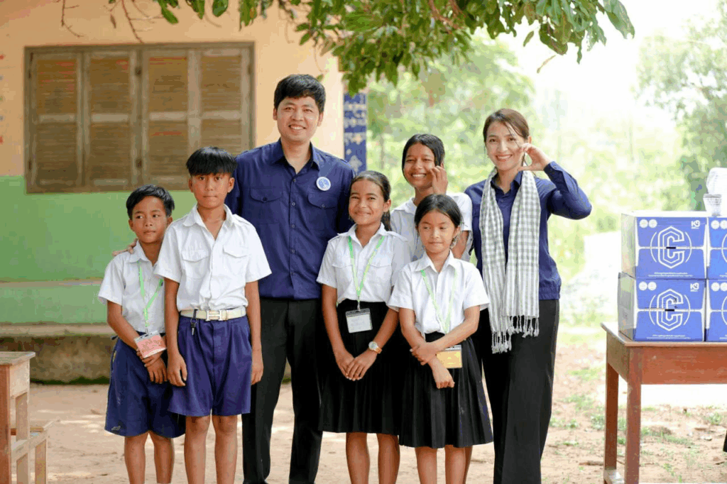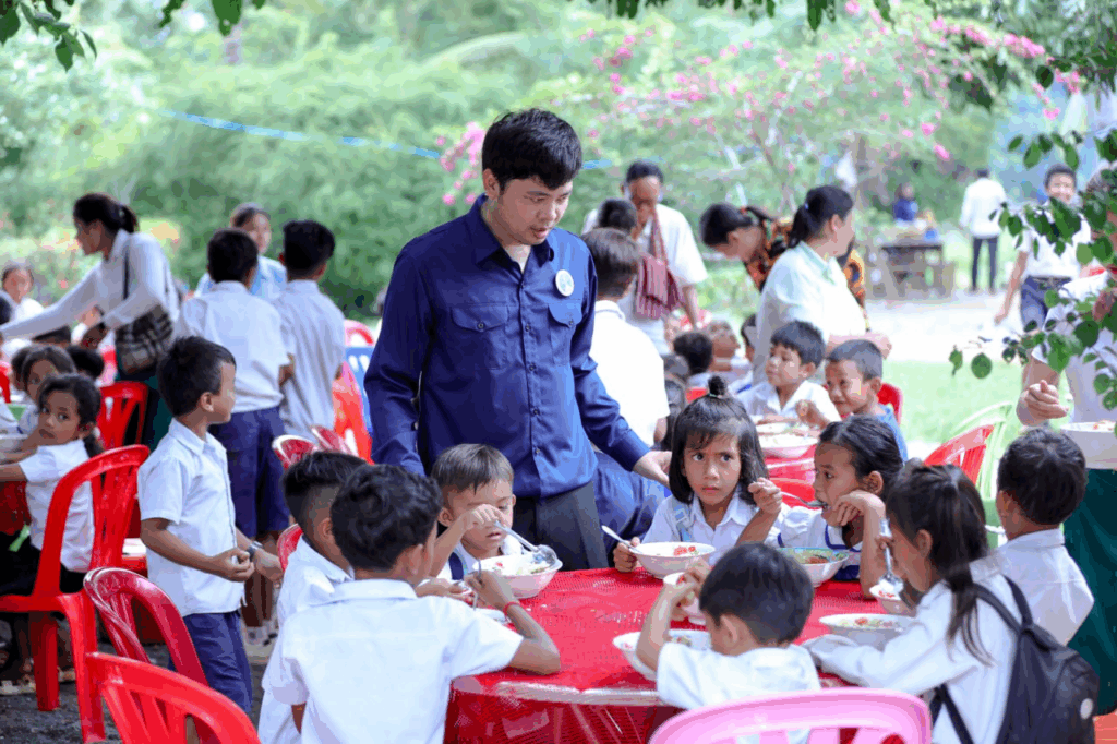 ជាក់ស្ដែងកាលពីពេលថ្មីៗនេះ លោកឧកញ៉ា ឡេង និមល និងលោកជំទាវ រួមជាមួយនឹងក្រុមការងារ បានបន្ដយុទ្ធនាការចែករំលែកក្ដីស្រឡាញ់ដល់កុមារកម្ពុជាជាង២០០នាក់ នៅសាលាបឋមសិក្សាមួយកន្លែងនៅក្នុងស្រុកជុំគិរី ខេត្ដកំពត។