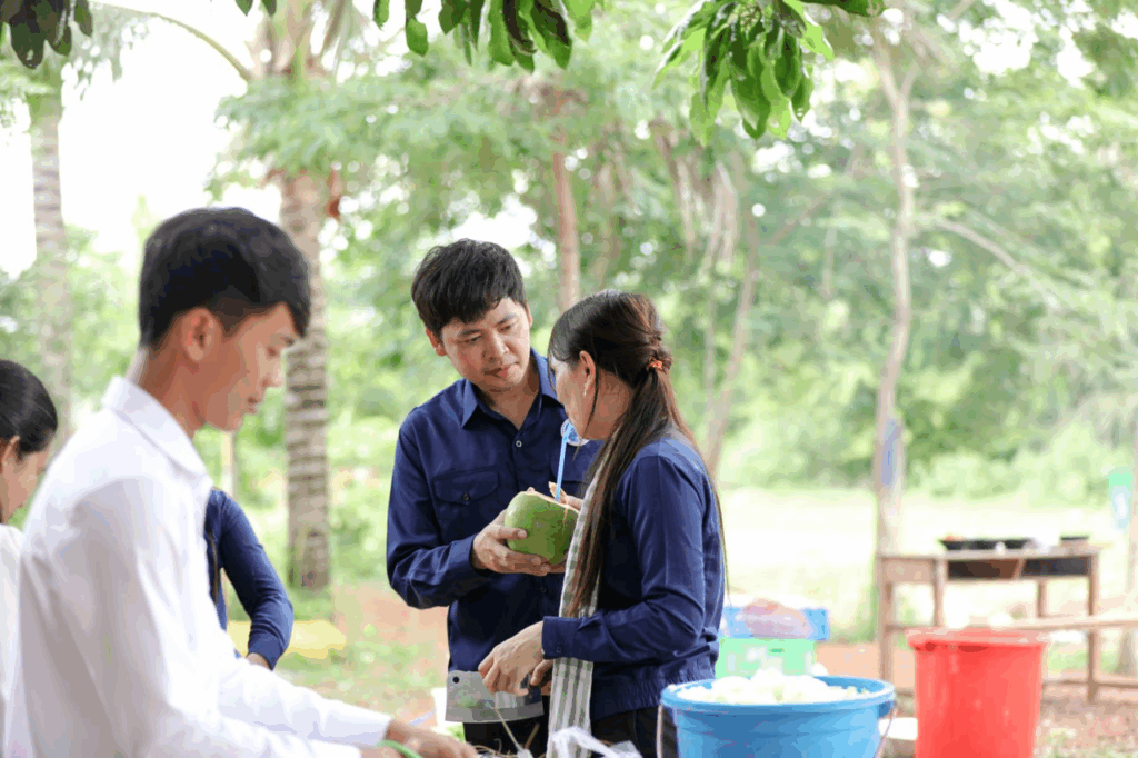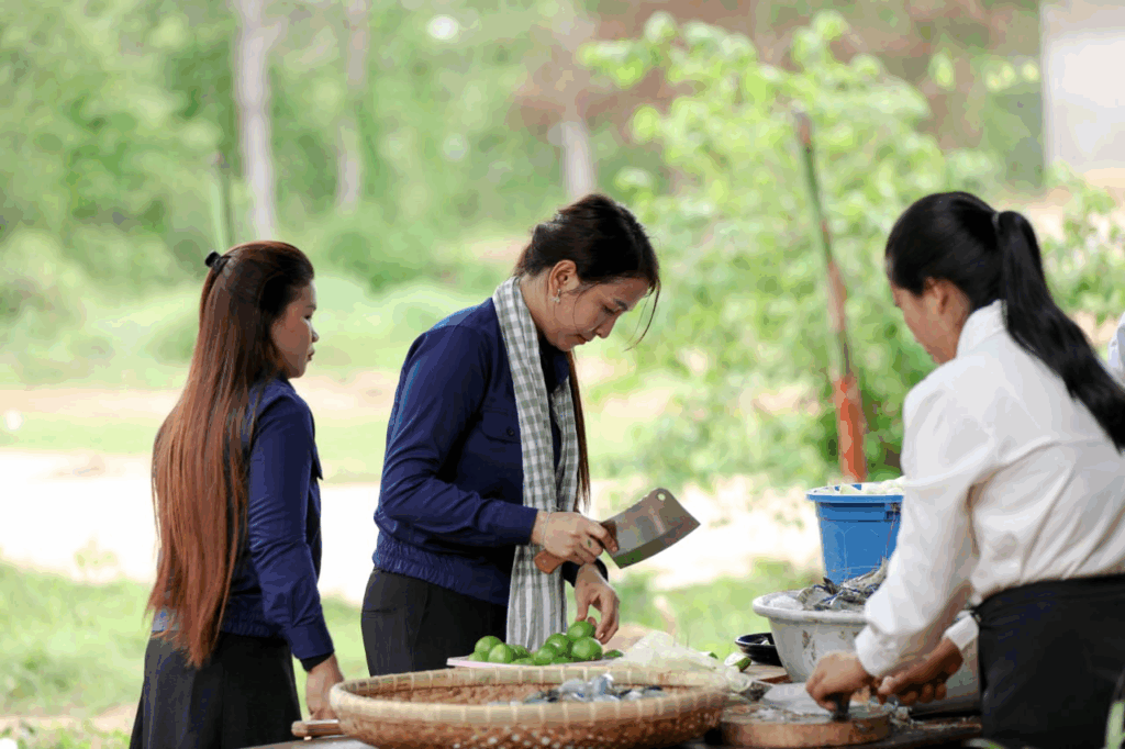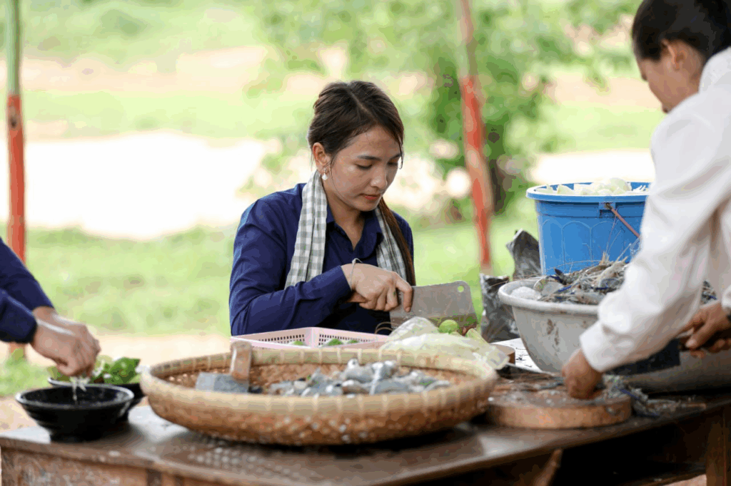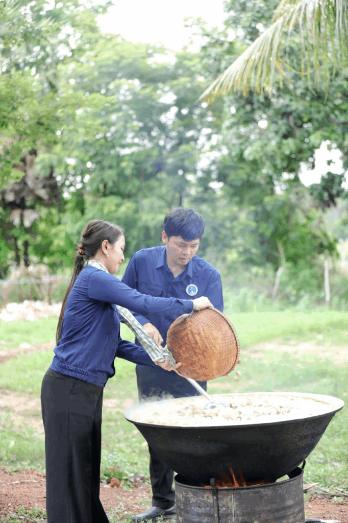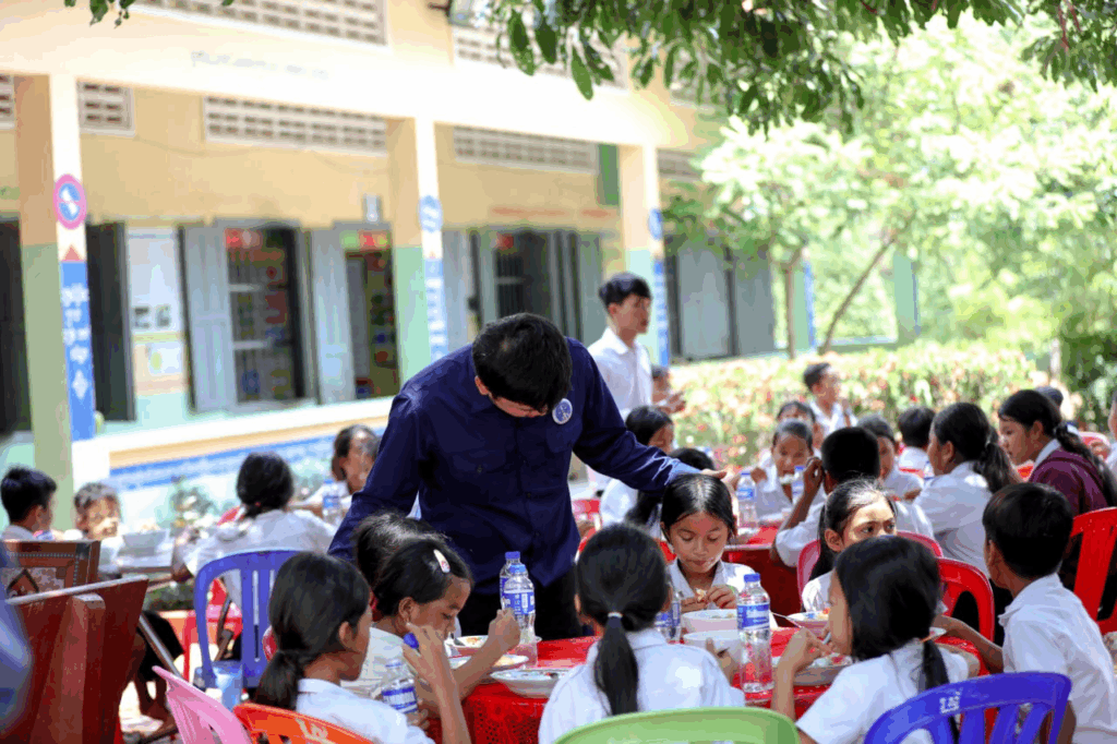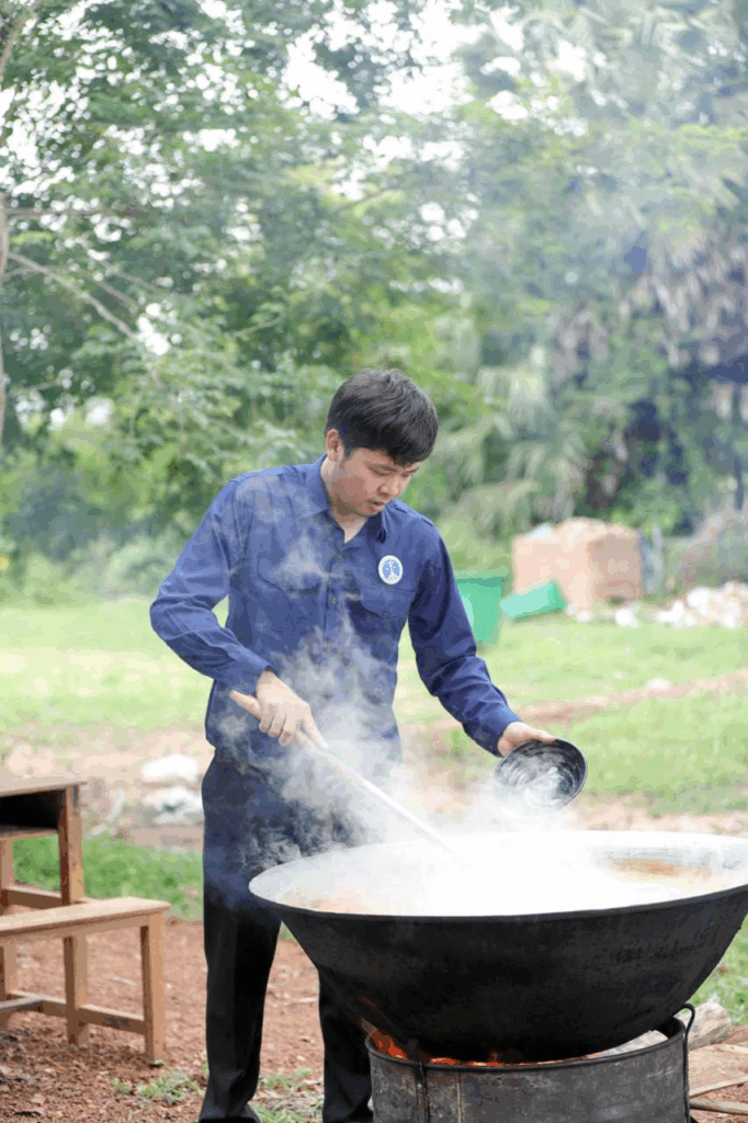 សម្លរតុងយ៉ាំបង្កងមួយខ្ទះត្នោតធំ ធ្វើដោយផ្ទាល់ដៃលោកឧកញ៉ា ឡេង និមល និងលោកជំទាវ បានទៅដល់សិស្សជាង២០០នាក់ នៅស្រុកជុំគិរីហើយ