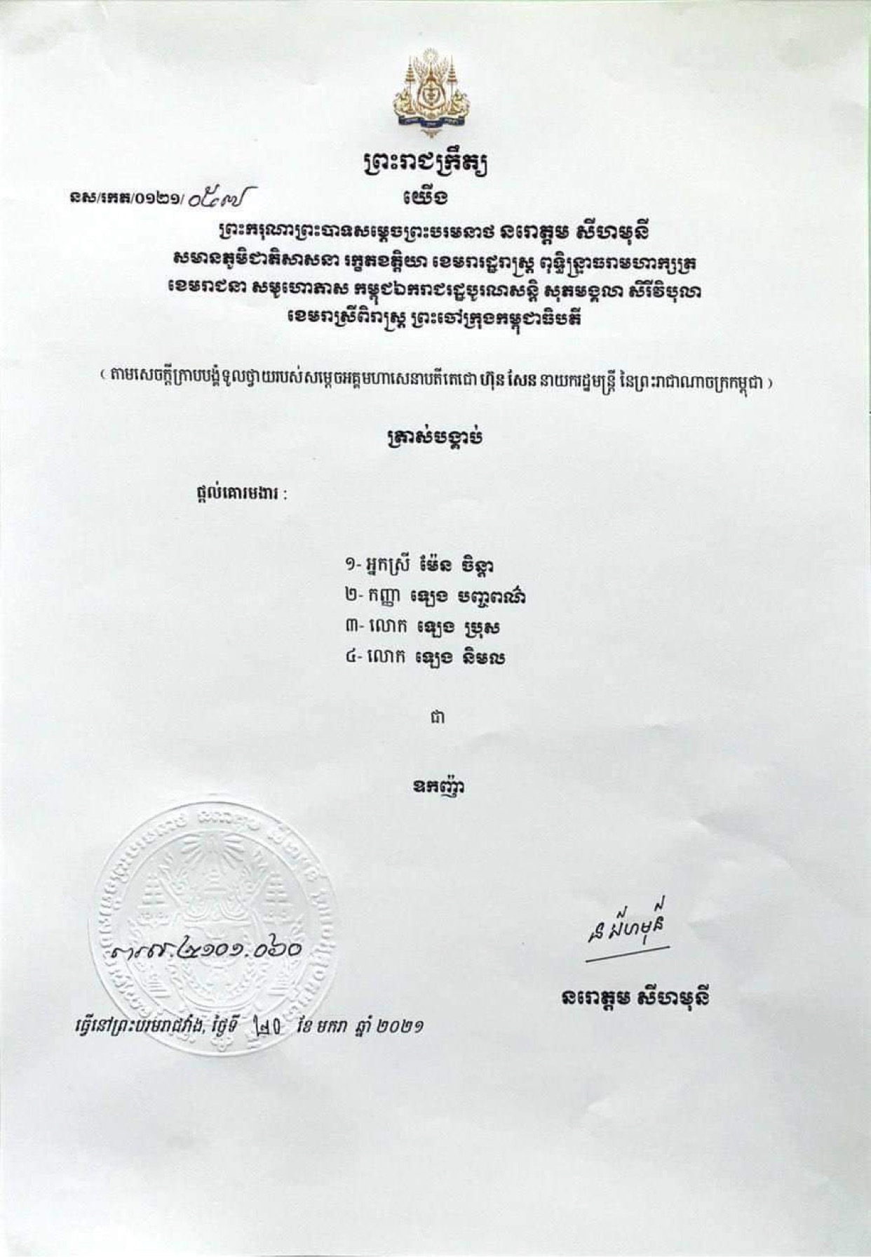 ព្រះករុណាព្រះបាទសម្តេចព្រះបរមនាថ នរោត្តម សីហមុនី ព្រះមហាក្សត្រនៃព្រះរាជាណាចក្រកម្ពុជា ទ្រង់ផ្តល់គោរមងារ ឧកញ៉ា ដល់អ្នកស្រីម៉ែន ចិន្ដា ធ្លាប់ធ្វើការនៅប្រទេសកូរ៉េខាងត្បូង។តាមសេចក្តីក្រាបបង្គំទូលថ្វាយរបស់សម្តេចតេជោ ហ៊ុន សែន នាយករដ្ឋមន្រ្តីនៃកម្ពុជា។