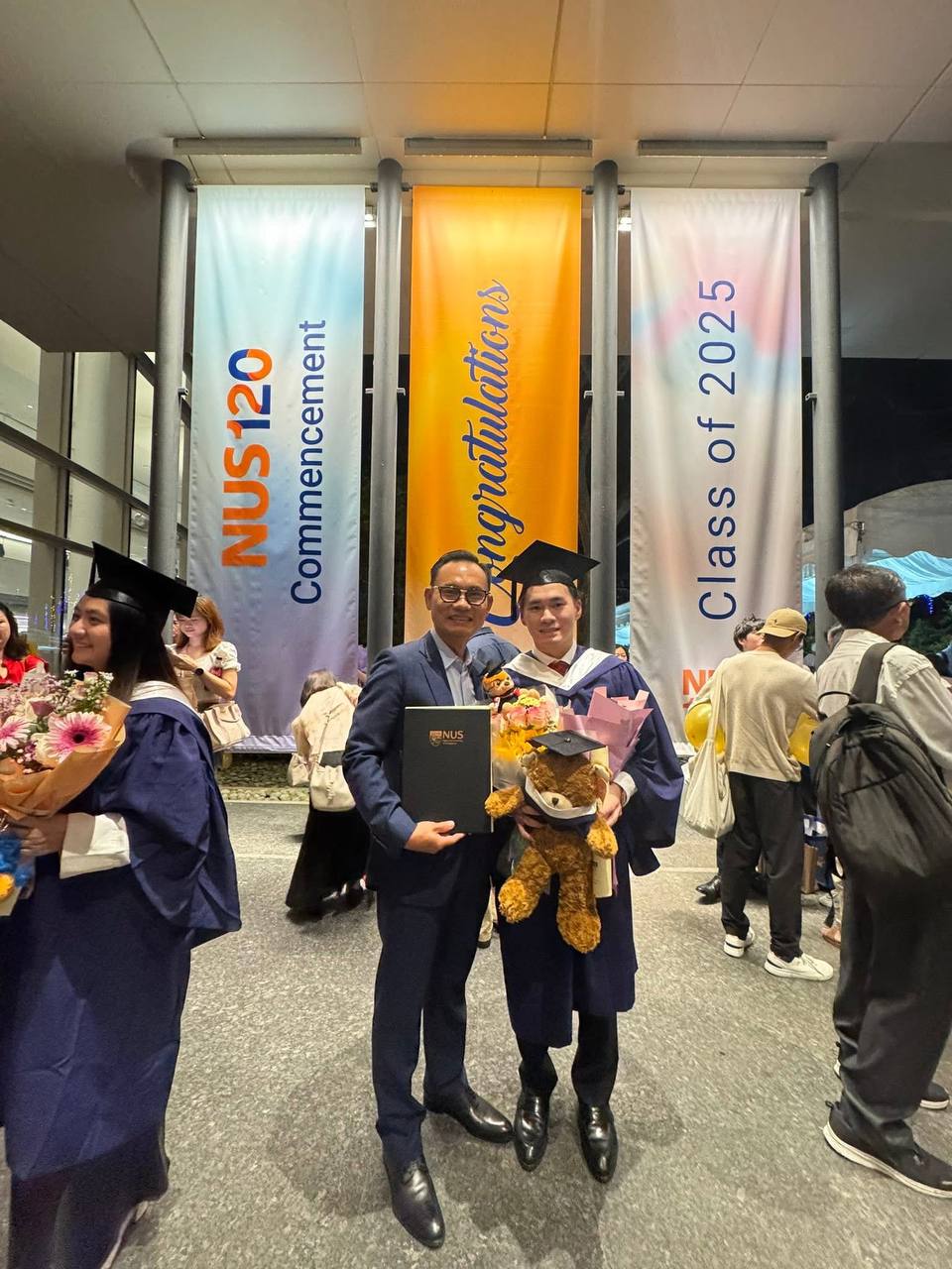 កូនប្រុសអ្នកឧកញ៉ា ជឹង សុគន្ធាវី អគ្គនាយិកានៃក្រុមហ៊ុនទឹកពិសាវីតាល់ និងផលិតផលមីជាតិ និងជាសមាជិកសមាគមឧកញ៉ាកម្ពុជា មានឈ្មោះថា LAU Jia Hao បានបញ្ចប់ការសិក្សាថ្នាក់បរិញ្ញាបត្រ ពីសាកលវិទ្យាល័យជាតិប្រទេសសិង្ហបុរី (National University of Singapore – NUS) កាលពីថ្ងៃទី១៥ ខែកក្កដា ឆ្នាំ២០២៥។