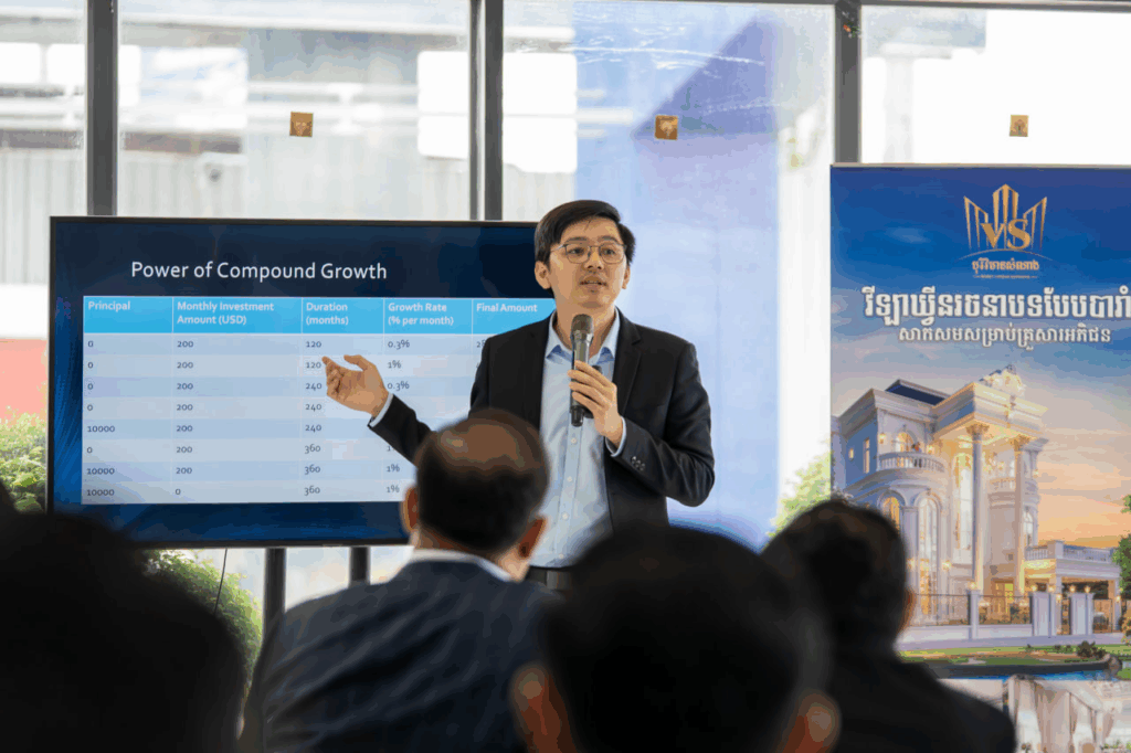នារសៀលថ្ងៃសុក្រ ៨ រោច ខែអាសាឍ ឆ្នាំម្សាញ់ សប្តស័ក ពុទ្ធសករាជ ២៥៦៩ ត្រូវនឹងថ្ងៃទី១៨ ខែកក្កដា ឆ្នាំ២០២៥ ឧកញ៉ាបណ្ឌិត គីម ហ៊ាង អគ្គនាយក បុរី វិមានសំណាង បានសហការណ៍ជាមួយ លោក យឿង វិរបុត្រ ប្រធានសមាគមន៍អ្នកវិនិយោគមូលបត្រកម្ពុជា បានដឹកនាំសហការី ចុះផ្តល់វគ្គបណ្តុះបណ្តាលដល់ទីកន្លែងក្រុមហ៊ុន បុរីវិមានសំណាង ម.ក។
