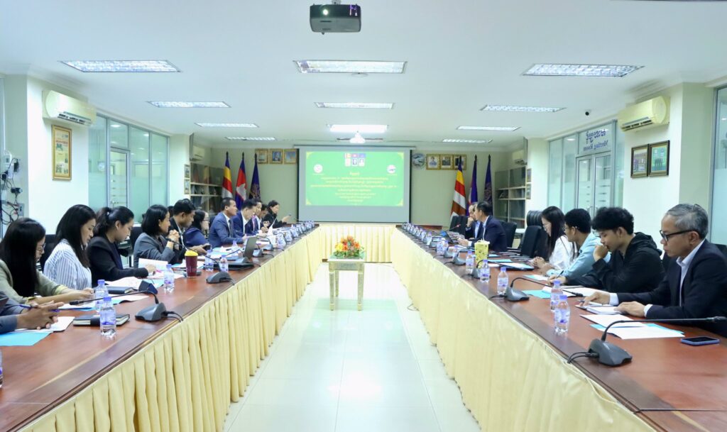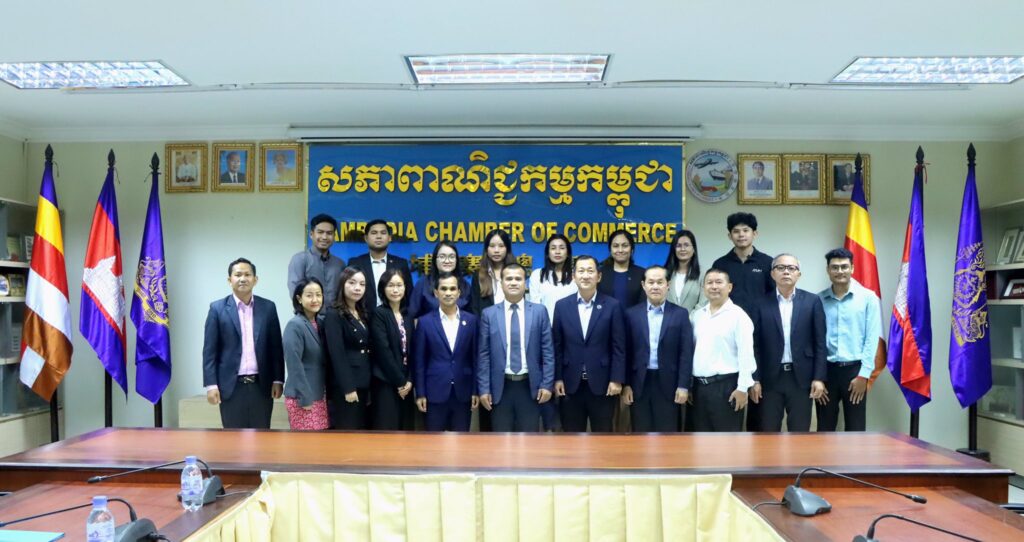 នាព្រឹកថ្ងៃចន្ទ ទី២១ ខែកក្កដា ឆ្នាំ២០២៥ នៅអគ្គនាយកដ្ឋានសភាពាណិជ្ជកម្មកម្ពុជា មានរៀបចំកិច្ចប្រជុំអនុក្រុមការងារ “ខ” “ផ្នែកកិច្ចសម្រួលពាណិជ្ជកម្មលើសេវាពាណិជ្ជកម្ម ការចុះបញ្ជីពាណិជ្ជកម្ម និងកម្មសិទ្ធបញ្ញា” ក្រោមយន្តការនៃក្រុមការងារ “ឆ” “ផ្នែកផលិតកម្មកែច្នៃសម្រាប់ការនាំចេញ និងកិច្ចសម្រួលពាណិជ្ជកម្ម” នៃវេទិការាជរដ្ឋាភិបាល-ផ្នែកឯកជន។