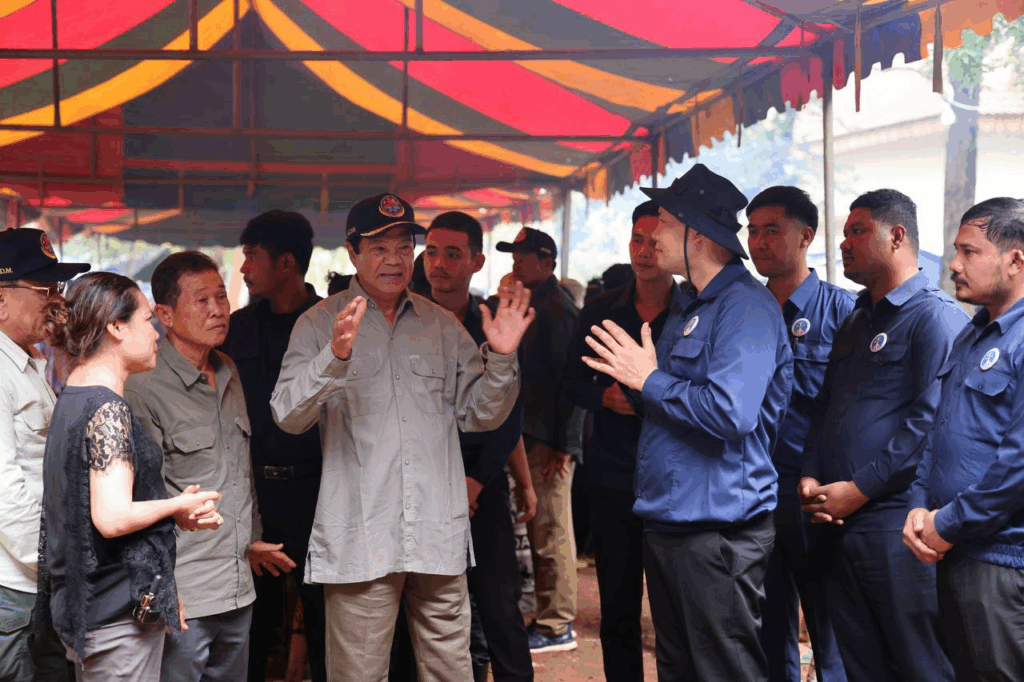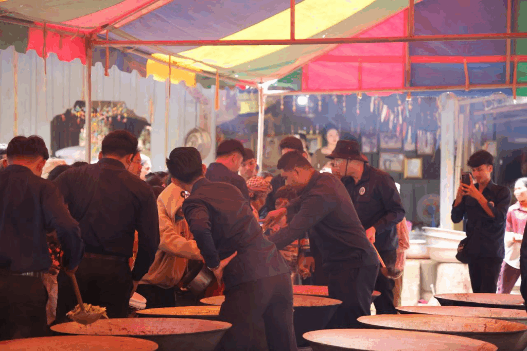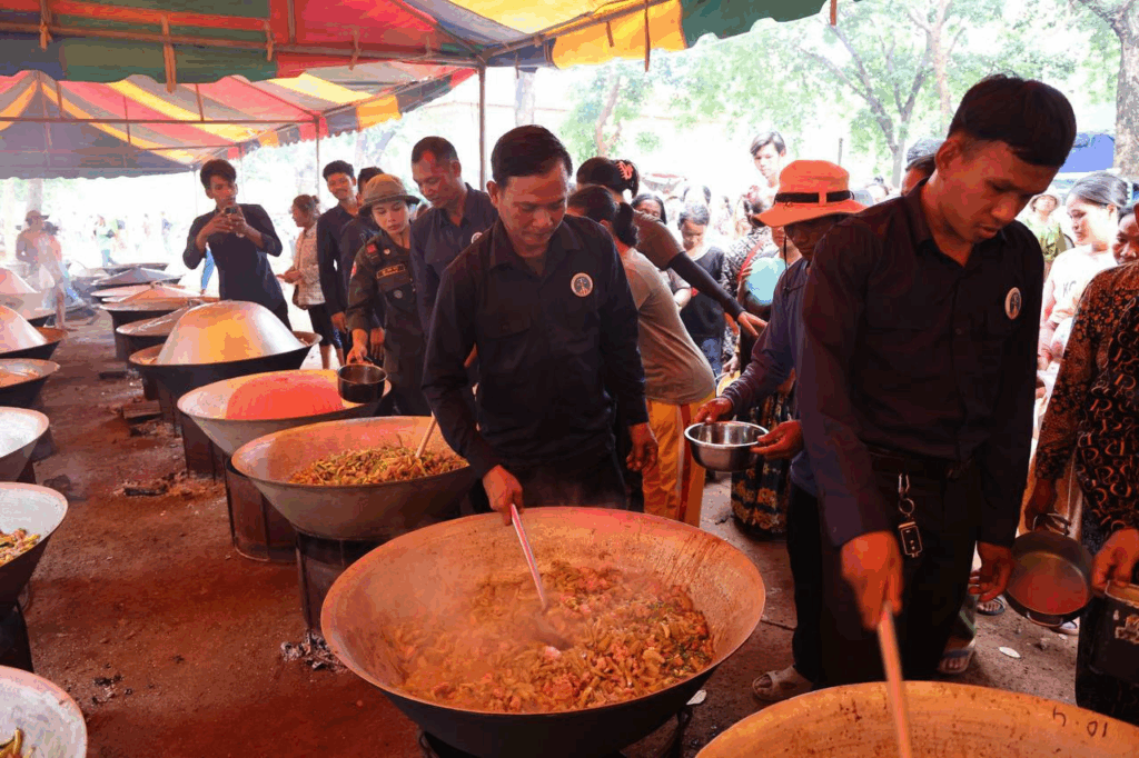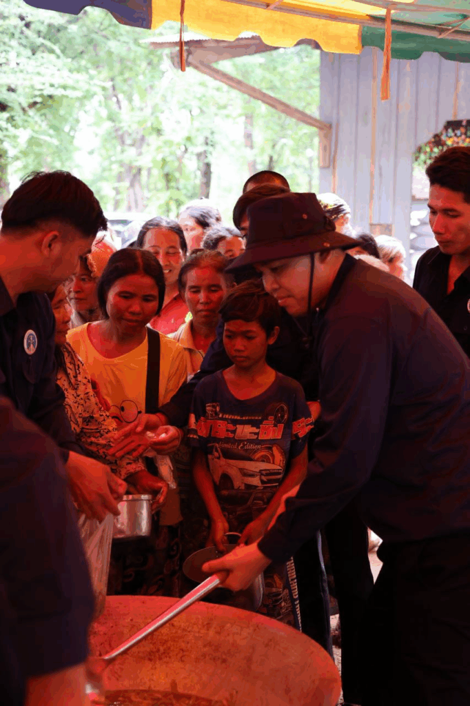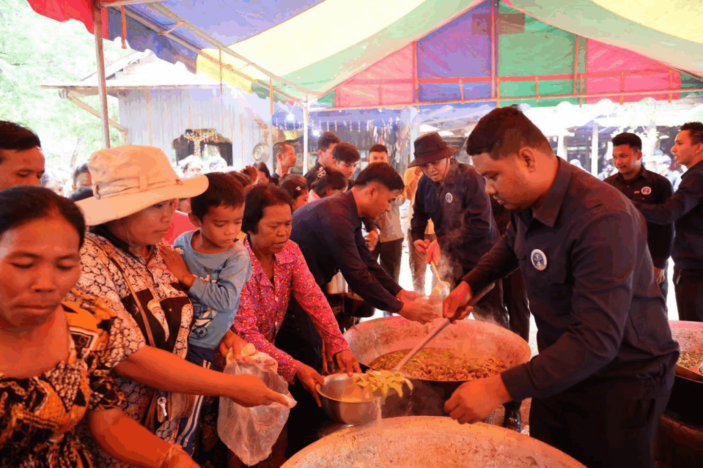 ក្រោយក្រុមការងារដាំបាយ និងចម្អិនម្ហូបឆ្អិនរួចរាល់មក ឯកឧត្តមកិត្តិសង្គហបណ្ឌិត គន់ គីម ទេសរដ្ឋមន្រ្តី អនុប្រធានទី១ គណៈកម្មាធិការជាតិគ្រប់គ្រងគ្រោះមហន្តរាយ និងអ្នកឧកញ៉ា ឡេង ណាវ៉ាត្រា បានរៀបចំដួសជូនដោយផ្ទាល់ដៃតែម្តង បង្ហាញពីការសាមគ្គីភាពគ្នាជាធ្លុងមួយ ក្នុងមហាគ្រួសារខ្មែរ។