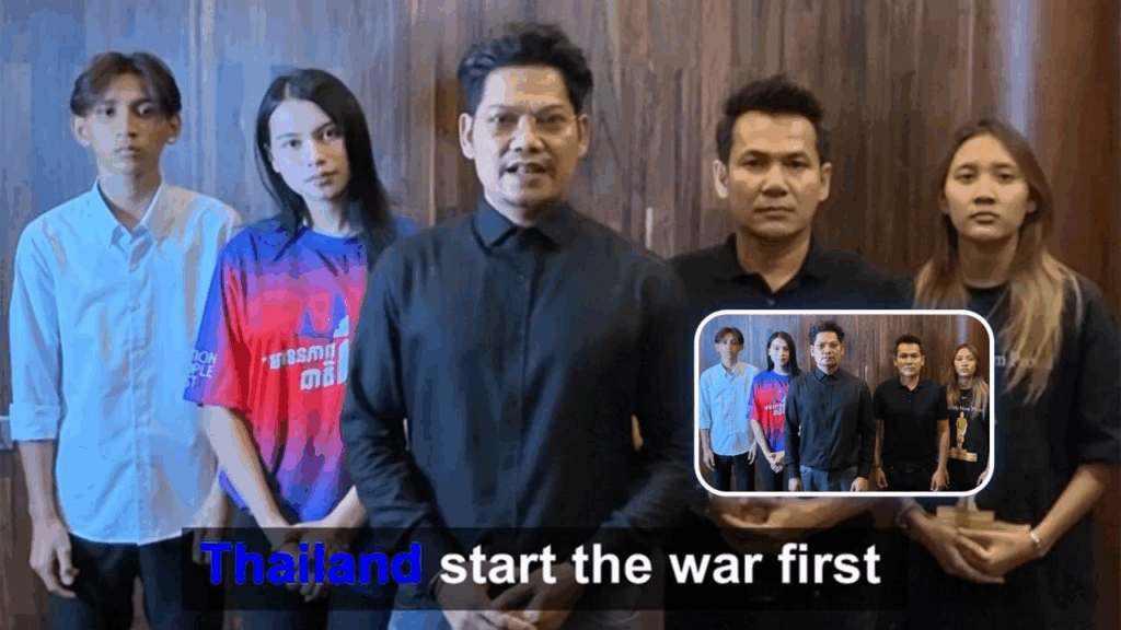 លោកឧកញ៉ា ព្រាប សុវត្ថិ , លោកខាត់ ជេម និងតារាចម្រៀងវ័យក្មេង៣រូបទៀត បានចេញវីដេអូនិយាយជាភាសាអង់គ្លេស ដើម្បីប្រាប់ទៅកាន់ពិភពលោកថា «ថៃជាអ្នកផ្ដើមសង្រ្គាម, ថៃកំពុងឈ្លានពានទឹកដីខ្មែរ, ថៃបើកការវាយប្រហារដោយអាវុធធំៗបំផ្លាញប្រាសាទខ្មែរដែលជាបេតិកភណ្ឌពិភពលោក ហើយកម្ពុជារងគ្រោះពីសង្គ្រាមឈ្លានពានរបស់ថៃ»។