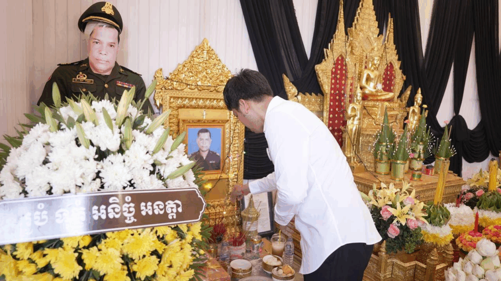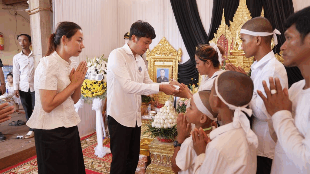 ឧកញ៉ា ឡេង និមល និងលោកជំទាវឧកញ៉ាបណ្ឌិត ឡេង បញ្ចពណ៌ តំណាងអ្នកឧកញ៉ា ឡេង ណាវ៉ាត្រា ប្រធានសហព័ន្ធយុវជនបូជាការពារយុត្តិធម៌ ចូលរួមគោរពវិញ្ញាណក្ខន្ធយុទ្ធជនពលី អនុសេនីយ៍ឯក អ៊ុន វណ្ណា ក្នុងសមរភូមិមុខនៃជម្លោះព្រំដែនកម្ពុជា-ថៃ