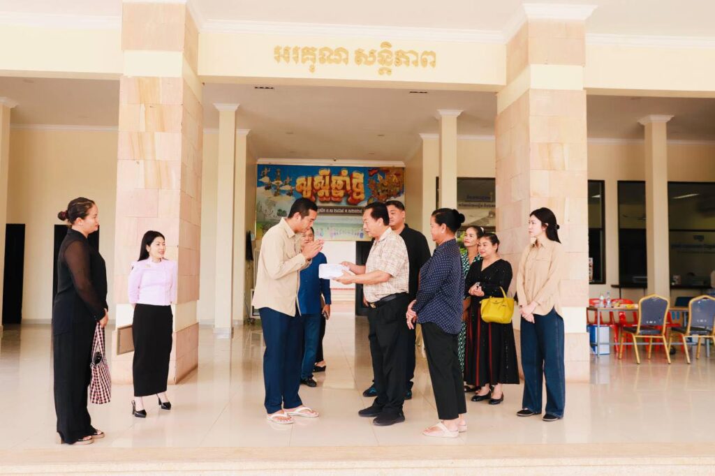 អ្នកឧកញ៉ា ម៉ុង ឫទ្ធី អគ្គនាយកក្រុមហ៊ុន ម៉ុង ឫទ្ធី គ្រុប និងលោកជំទាវ នារសៀលថ្ងៃទី០៥ ខែសីហា ឆ្នាំ២០២៥ បានដឹកនាំក្រុមការងារនាំយកថវិកាចំនួន ៥០លានរៀល ប្រគល់ជូនដល់ អភិបាលខេត្តសៀមរាប ដើម្បីជួយដល់វីរកងទ័ពជួរមុខ និងបងប្អូនជនភៀសសឹក។