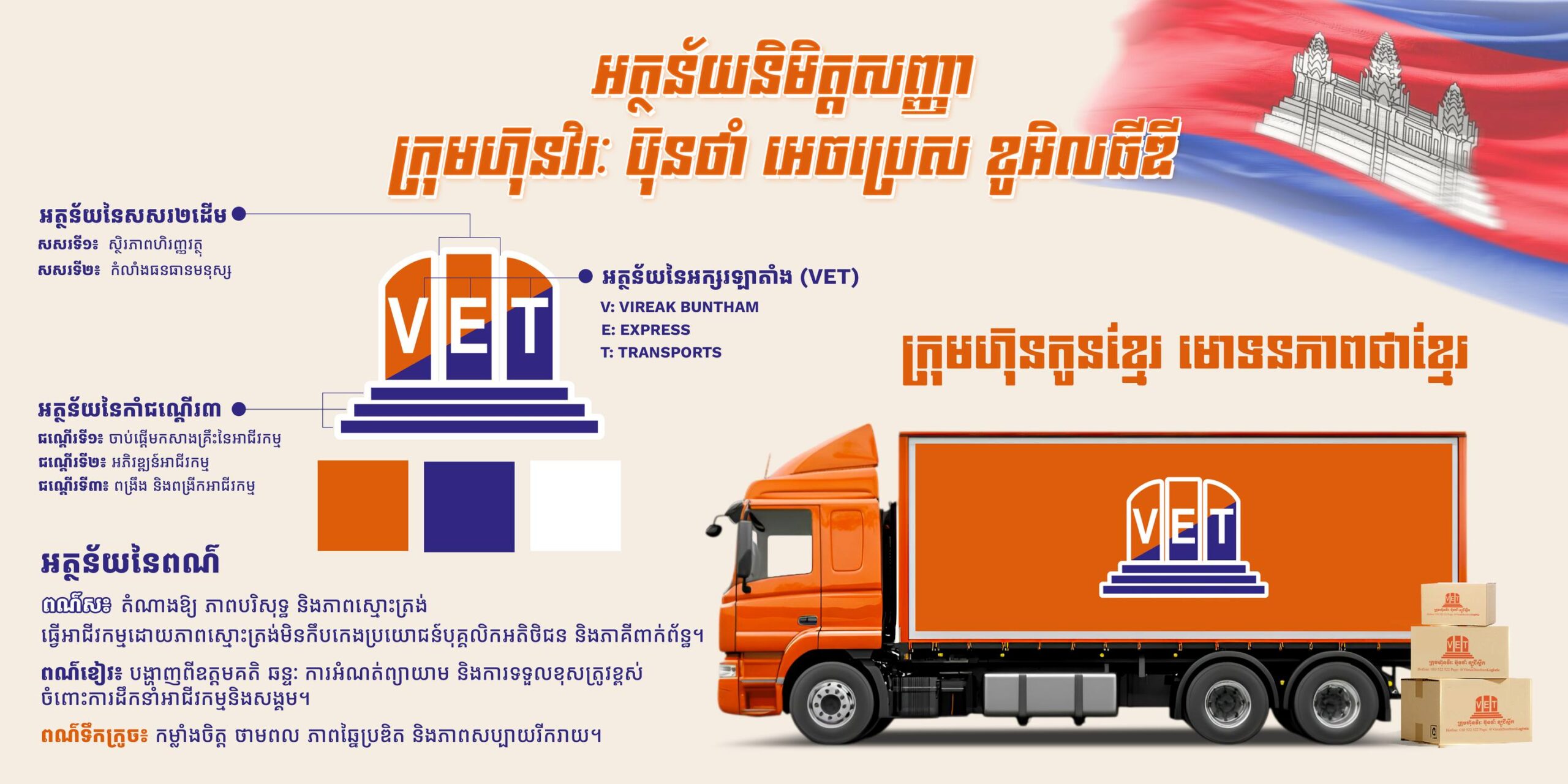 ៤.អត្ថន័យនៃអក្សរឡាតាំង (VET)៖ V: VIREAK BUNTHAM, E: EXPRESS, T: TRANSPORTS។