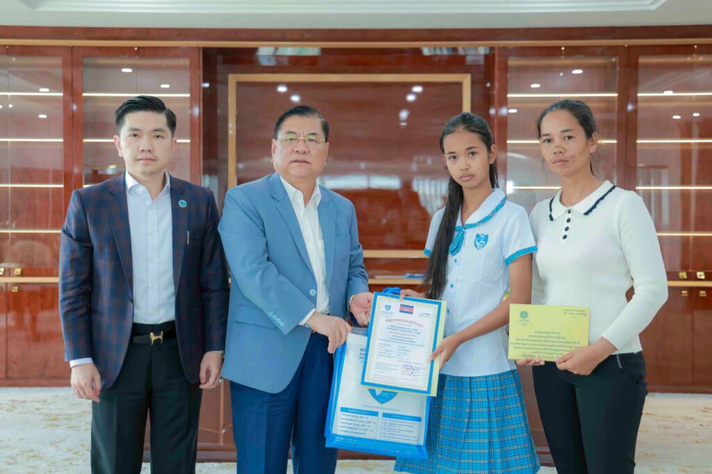 ឧកញ៉ា លី ឆេង ប្រគល់ប័ណ្ណអាហារូបករណ៍ពិសេស ១០០% សិក្សារយៈពេល ១២ឆ្នាំ ដល់កូនស្រីបង្កើតរបស់វីរយុទ្ធជនពលី លោកវរសេនីយ៍ត្រី លៀម សំពៅមាស