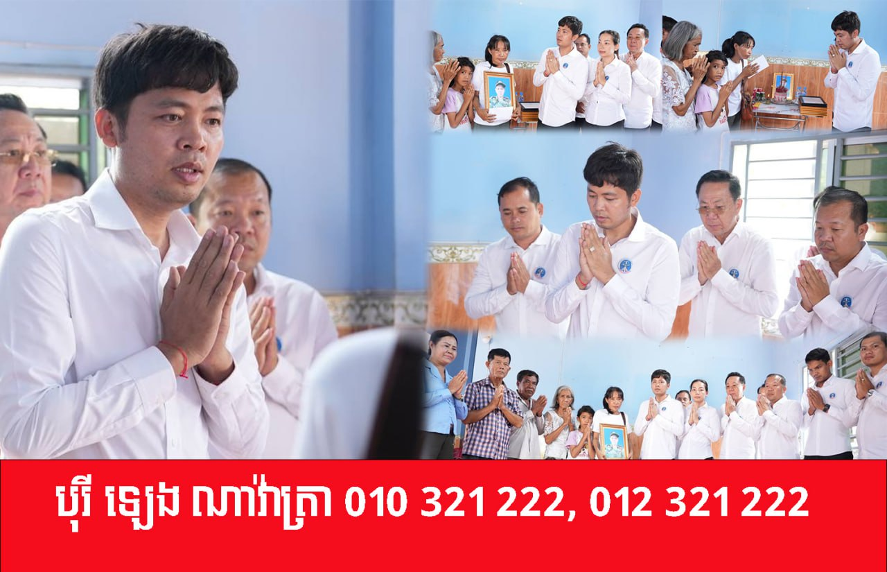 នៅថ្ងៃព្រហស្បតិ៍ ទី៧ ខែសីហា ឆ្នាំ២០២៥ ឧកញ៉ា ឡេង និមល និងលោកជំទាវឧកញ៉ាបណ្ឌិត ឡេង បញ្ចពណ៌ តំណាងអ្នកឧកញ៉ា ឡេង ណាវ៉ាត្រា ប្រធានសហព័ន្ធយុវជនបូជាការពារយុត្តិធម៌ បានអញ្ជើញដឹកនាំក្រុមការងារចូលរួមគោរពវិញ្ញាណក្ខន្ធយុទ្ធជនពលី ពលបាលឯក ឈូក វ៉ាន់ត្រូយ ដែលបានពលីជីវិតក្នុងការការពារបូរណភាពជាតិ និងអធិបតេយ្យជាតិ។