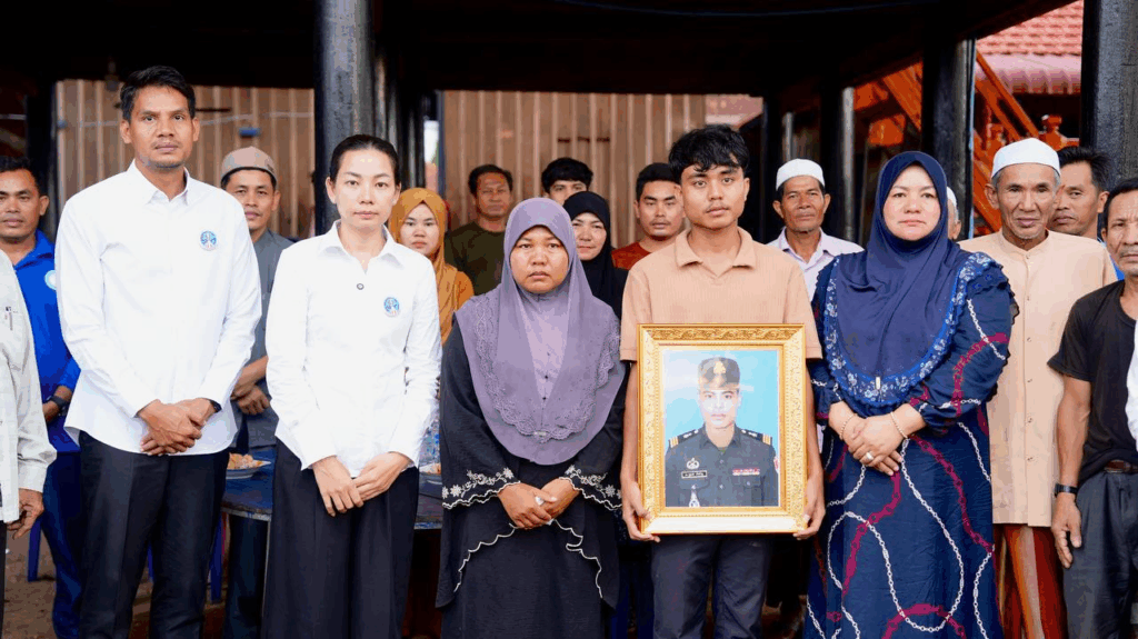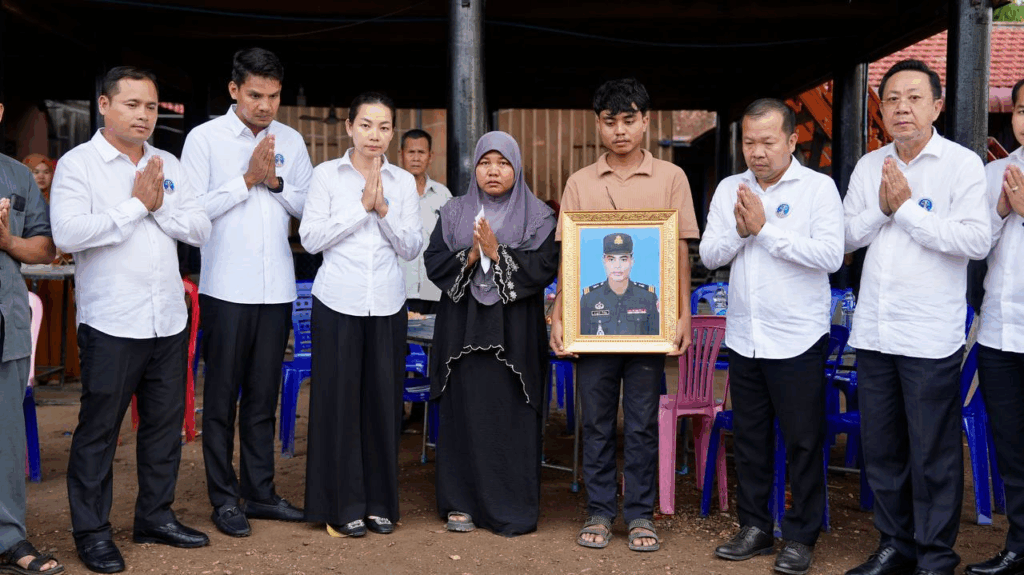 សូមជម្រាបជូនថា យុទ្ធជនពលី លោកអនុសេនីយ៍ឯក ប្រាក់ ពិសិដ្ឋ មានអាយុ៤២ឆ្នាំ ពិធីបុណ្យសព បច្ចុប្បន្នធ្វើបុណ្យនៅភូមិឈើទាលខ្ពស់ ឃុំព្រែកសាម៉ាន់ ស្រុកឆ្លូង ខេត្ដក្រចេះ។ យុទ្ធជនពលី លោក អនុសេនីយ៍ឯក ប្រាក់ ពិសិដ្ឋ បានពលីជីវិតក្នុងការការពារបូរណភាពជាតិ និងអធិបតេយ្យជាតិ កាលពីថ្ងៃ២៧ កក្កដា ឆ្នាំ ២០២៥ នៅតំបន់ភ្នំទ្រព្យ៕