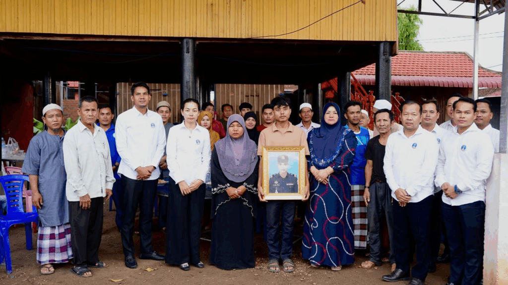 នាថ្ងៃទី៩ ខែសីហា ឆ្នាំ២០២៥ លោកជំទាវឧកញ៉ាបណ្ឌិត ឡេង បញ្ចពណ៌ តំណាងអ្នកឧកញ៉ា ឡេង ណាវ៉ាត្រា ប្រធានសហព័ន្ធយុវជនបូជាការពារយុត្តិធម៌ បានអញ្ជើញដឹកនាំក្រុមការងារចូលរួមគោរពវិញ្ញាណក្ខន្ធយុទ្ធជនពលី លោកអនុសេនីយ៍ឯក ប្រាក់ ពិសិដ្ឋ ដែលបានពលីជីវិតក្នុងការការពារបូរណភាពជាតិ និងអធិបតេយ្យជាតិ។