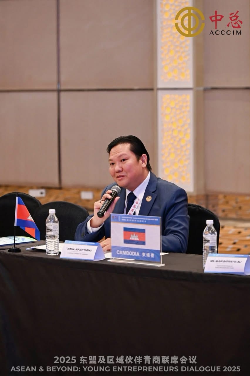 ឧកញ៉ា គួច ផេង អនុប្រធានសភាពាណិជ្ជកម្មកម្ពុជា តំណាងអ្នកឧកញ៉ា គិត ម៉េង ប្រធានសភាពាណិជ្ជកម្មកម្ពុជា និងជាក្រុមប្រឹក្សាពិគ្រោះយោបល់ធុរកិច្ចអាស៊ាន នាថ្ងៃទី១៦ ខែសីហា ឆ្នាំ២០២៥ បានដឹកនាំគណៈប្រតិភូសភាពាណិជ្ជកម្មកម្ពុជា អញ្ជើញចូលរួមសន្និសីទសហគ្រិនវ័យក្មេងរបស់ ACCCIM លើទី១៤ ឆ្នាំ២០២៥ នៅទីក្រុងគូឡាឡាំពួ ប្រទេសម៉ាឡេស៊ី។