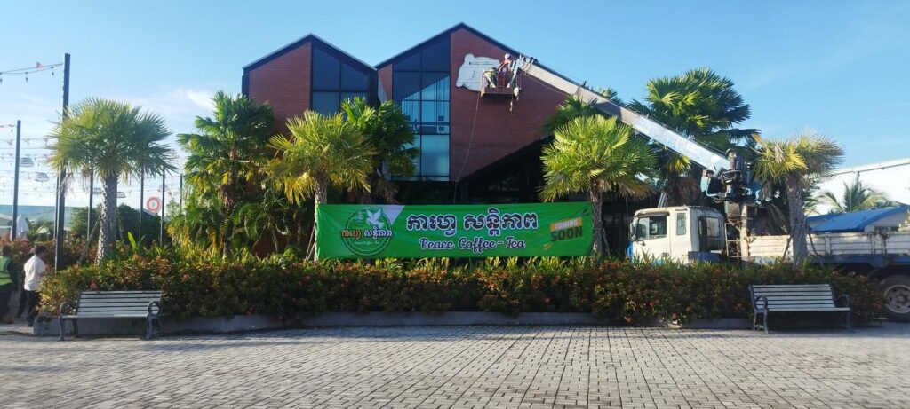 តាមរយៈបណ្តាញសង្គម អ្នកឧកញ៉ា បានបង្ហោះរូបភាពសកម្មភាពក្រុមជាងកំពុងរុះរើយីហោចាស់ និងបំពាក់ស្លាកឈ្មោះយីហោថ្មី «កាហ្វេ សន្តិភាព»។ អ្នកឧកញ៉ា ទៀ វិចិត្រ បានបញ្ជាក់បន្ថែមជាមួយសារបែបនេះថា៖ “អូនប្រែហើយ ! មកជា កាហ្វេ សន្តិភាព កំពង់ផែទេសចរណ៍ ខេត្តព្រះសីហនុ វិញ»។