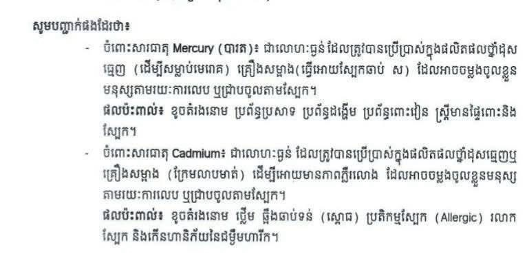 លោកឧត្តមសេនីយ៍ទោស្នងការខេត្ត បានបន្ថែមដូច្នេះថា៖ “ខ្ញុំសូមបញ្ជាក់ថា ផលិតផលចំនួន៤ មុខ ក្នុងចំណោមផលិតផលផ្សេងទៀត ដែលយកទៅពិសោធន៍ និងធ្វើតេស្ត ដែលម្ចាស់ក្រុមហ៊ុនខាងលើ Live ផ្សាយលក់ គឺជាការបោកប្រាស់ ក្លែងក្លាយ ហើយមានសារធាតុហាមឃាត់លើស ខុសពីច្បាប់អនុញ្ញាត ធ្វើឲ្យប៉ះពាល់សុខភាពយ៉ាងខ្លាំងដល់អ្នកប្រើប្រាស់ជារួមគួរនាំគ្នាអាណិតដល់អ្នកជឿចាញ់បោក ខំប្រឹងរកលុយមកទិញផលិតផលរបស់ក្រុមហ៊ុនខាងលើ យកមកប្រើប្រាស់ ដែលប៉ះពាល់ដល់សុខភាពដោយមិនដឹងខ្លួនពីមួយថ្ងៃទៅមួយថ្ងៃ”។