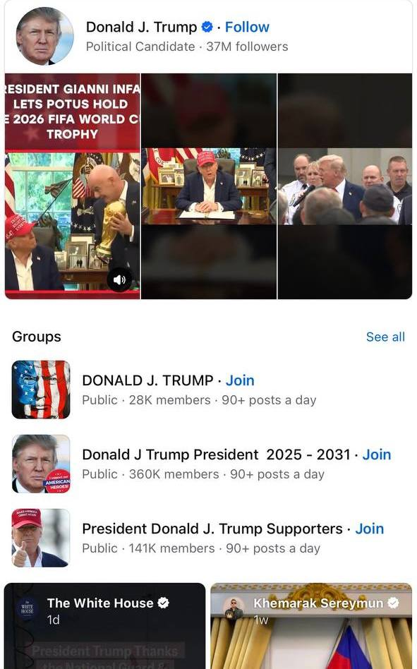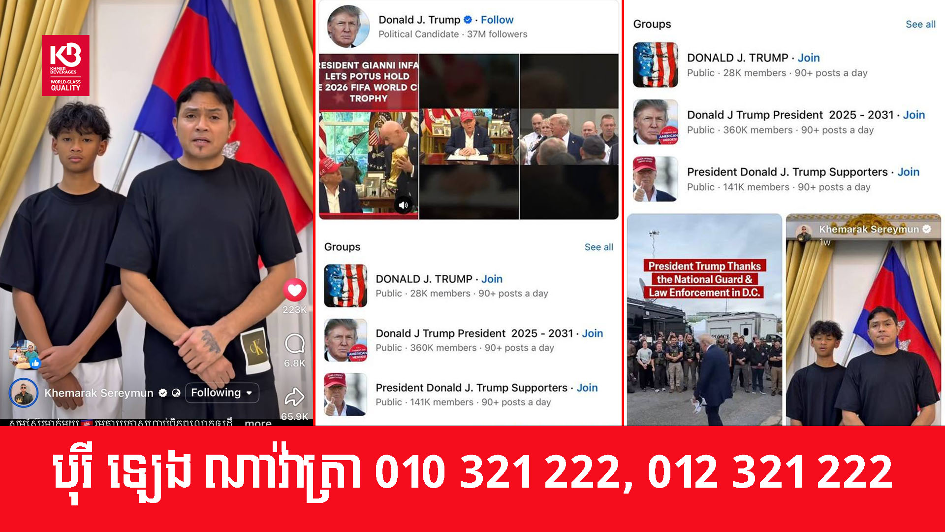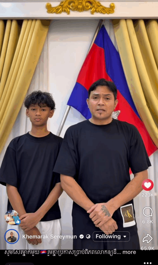 ពិភពលោកប្រាកដជាបានដឹងពីសង្រ្គាមដែលថៃបង្ករឡើងចំពោះកម្ពុជា ព្រោះថាវីដេអូរបស់លោកឧកញ៉ា ខេមរៈ សិរីមន្ដ និងកូនប្រុស ដែលនិយាយរៀបរាប់ពីសង្រ្គាមកម្ពុជា និងថៃ បាននិងកំពុងផ្ទុះខ្លាំងនៅលើបណ្ដាញសង្គមហ្វេសប៊ុក ជាពិសេសវីដេអូរបស់លោកឧកញ៉ា បានលោតលើគេបង្អស់នៅក្នុង account ប្រធានាធិបតី អាមេរិក donald trump ដែលមានអ្នកហ្វូឡូ 37M។