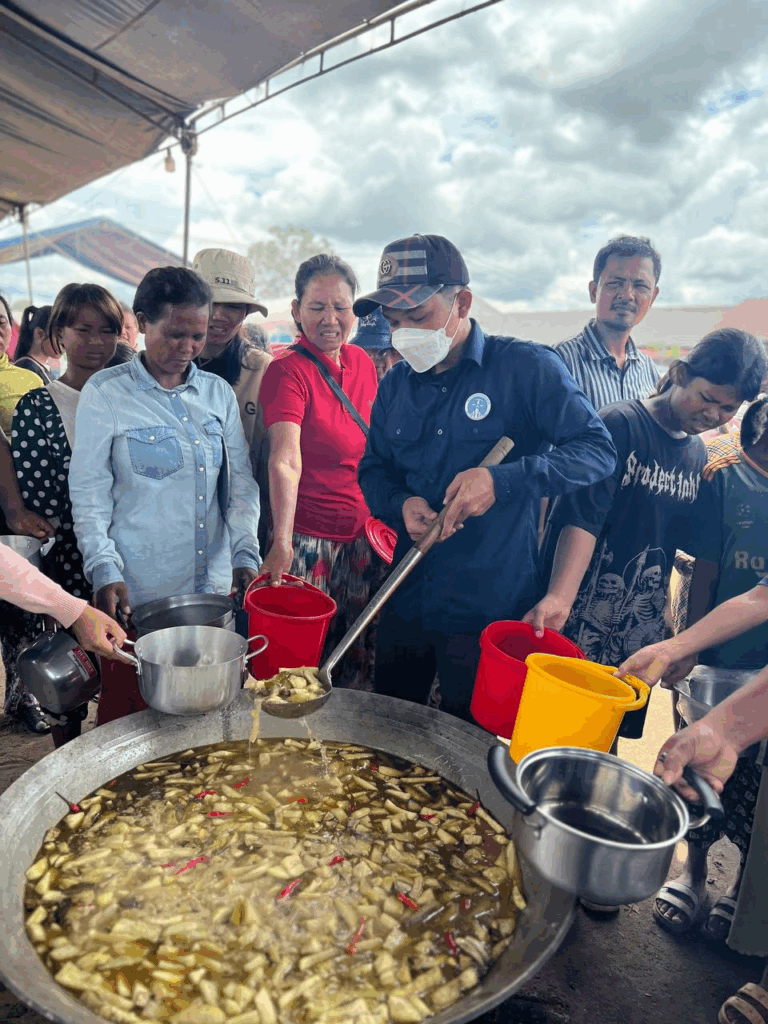 បេសកកម្មរៀបចំផ្គត់ផ្គង់ម្ហូបអាហារហូបចុកជូនប្រជាពលរដ្ឋភៀសសឹករបស់អ្នកឧកញ៉ា ឡេង ណាវ៉ាត្រា ប្រធានសហព័ន្ធយុវជនបូជាការពារយុត្តិធម៌ ធ្វើឡើងក្រោមកិច្ចសហការជាមួយឯកឧត្តមកិត្តិសង្គហបណ្ឌិត គន់ គីម ទេសរដ្ឋមន្ត្រី អនុប្រធានទី១ គណៈកម្មាធិការជាតិគ្រប់គ្រងគ្រោះមហន្តរាយ និងឯកឧត្តម គីម រិទ្ធី អភិបាលខេត្តព្រះវិហារ។