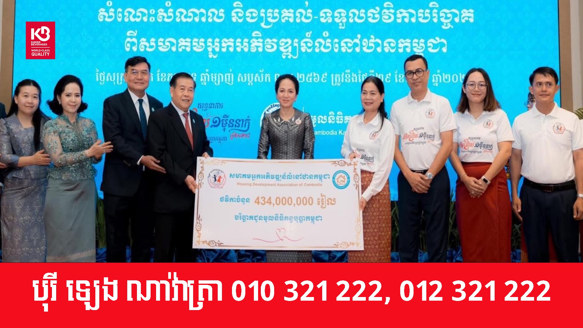 សមាគមអ្នកអភិវឌ្ឍន៍លំនៅឋានកម្ពុជា បានពាំនាំថវិកាចំនួន ៤៣៤,០០០,០០០ រៀល ដើម្បីជូនមូលនិធិគន្ធបុប្ផាកម្ពុជា ហើយថវិកាទាំងនេះ គឺទទួលបានពីការចូលរួមបរិច្ចាគពីសប្បុរសធម៌ ដែលជាសមាជិក នៃសមាគមអ្នកអភិវឌ្ឍន៍លំនៅឋានកម្ពុជាដើម្បីរួមចំណែកជួយទ្រទ្រង់បេសកម្មមន្ទីរពេទ្យគន្ធបុប្ផាកម្ពុជា ជាពិសេសជួយដល់អាយុជីវិតទារក និងកុមារកម្ពុជា ក្នុងស្មារតី “ខ្មែរជួយខ្មែរ ខ្មែរស្រលាញ់ខ្មែរ”។