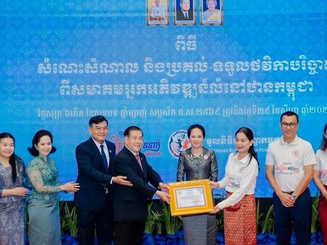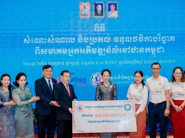 លោកអ្នកឧកញ៉ា លី ហួរ នាំយកថវិកា ៤៣៤លានរៀល របស់សមាគមអ្នកអភិវឌ្ឍន៍លំនៅឋានកម្ពុជា ប្រគល់ជូនលោកជំទាវបណ្ឌិត ពេជ ចន្ទមុន្នី ហ៊ុនម៉ាណែត ប្រធានកិត្តិយសនៃមូលនិធិគន្ធបុប្ផាកម្ពុជា