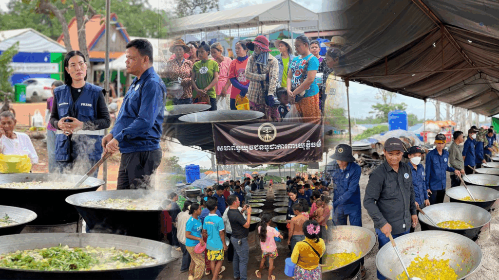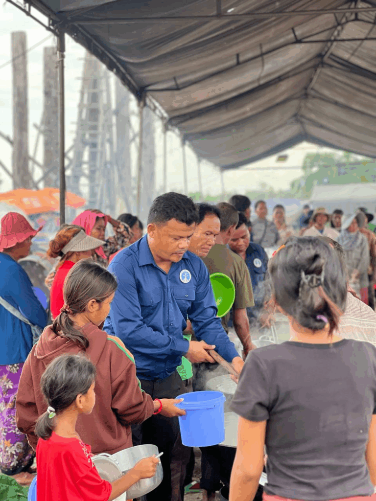 ប្រជាពលរដ្ឋភៀសសឹក ៧គោលដៅ ចំនួន ៤,៥៨៩គ្រួសារ ស្មើ ១៤,៧៩១នាក់ អ្នកឧកញ៉ា ឡេង ណាវ៉ាត្រា ប្រធានសហព័ន្ធយុវជនបូជាការពារយុត្តិធម៌ បានបន្តដឹកនាំក្រុមការងាររៀបចំផ្គត់ផ្គង់ម្ហូបជូននៅថ្ងៃទី៣០ ខែសីហា ឆ្នាំ២០២៥។
