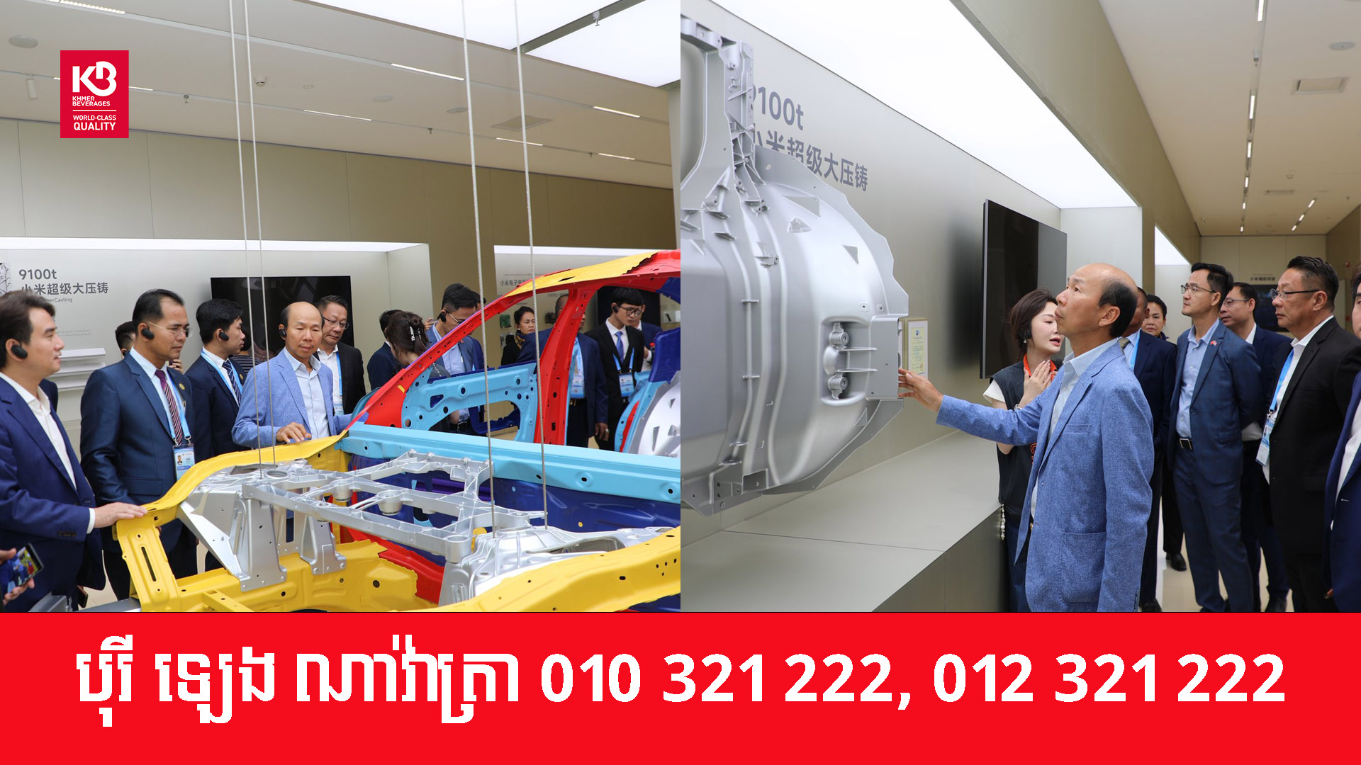 ទីក្រុងធានជីន ប្រទេសចិន៖ នាព្រឹកថ្ងៃចន្ទ ទី១ ខែកញ្ញា ឆ្នាំ២០២៥នេះ អ្នកឧកញ៉ា លី ឃុនថៃ អនុប្រធានសភាពាណិជ្ជកម្មកម្ពុជា តំណាង អ្នកឧកញ៉ា គិត ម៉េង ប្រធានសភាពាណិជ្ជកម្មកម្ពុជា និងជាប្រធានក្រុមប្រឹក្សាពិគ្រោះយោបល់ធុរកិច្ចអាស៊ានសម្រាប់កម្ពុជា ដឹកនាំគណៈប្រតិភូសភាពាណិជ្ជកម្មកម្ពុជា ធ្វើទស្សនកិច្ច រោងចក្រ សាវមី អ៊ីវី ហាភើ ហ្វេកតូរី (Xiaomi EV Hyper Factory)។