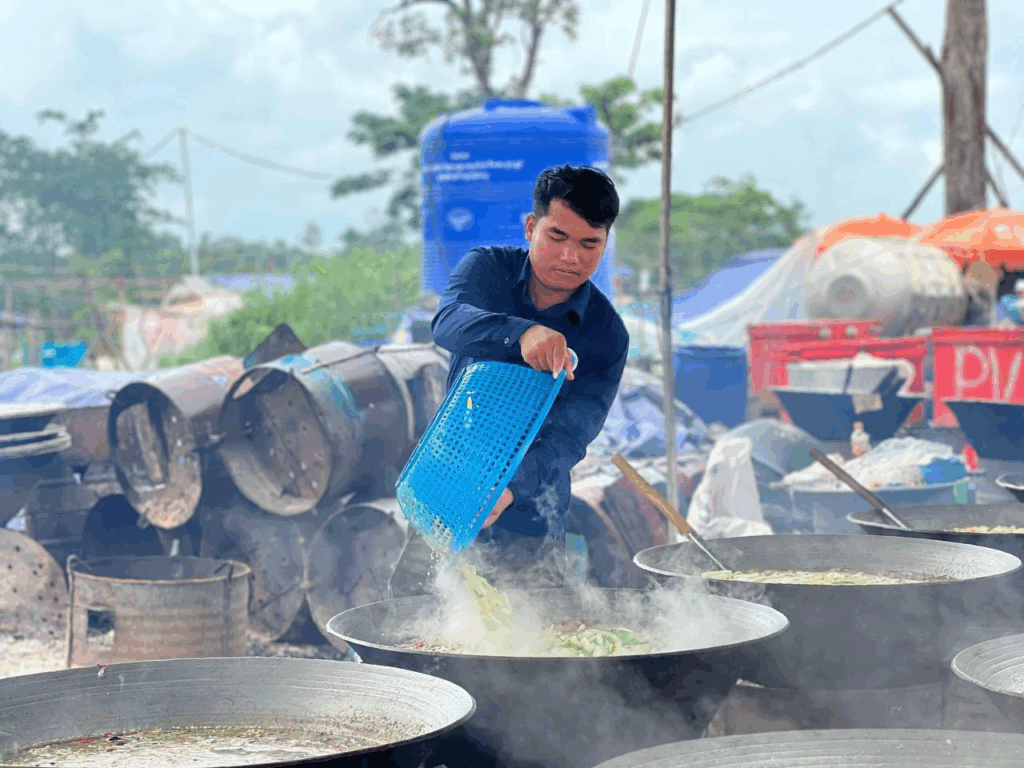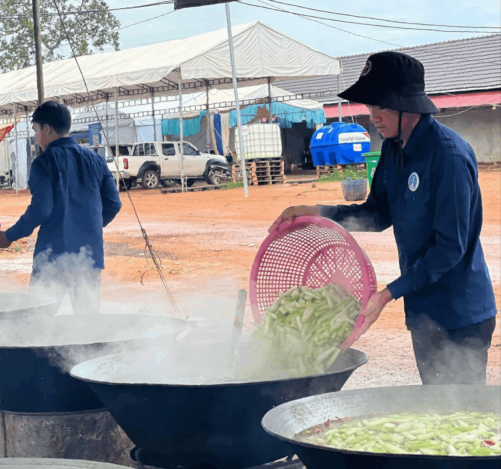 យោងតាមការបង្ហោះលើផេកយុវជនបូជាការពារយុត្តិធម៌ ការរៀបចំផ្គត់ផ្គង់ម្ហូបអាហារហូបចុកជូនប្រជាពលរដ្ឋភៀសសឹករបស់អ្នកឧកញ៉ា ឡេង ណាវ៉ាត្រា ប្រធានសហព័ន្ធយុវជនបូជាការពារយុត្តិធម៌ ធ្វើឡើងក្រោមកិច្ចសហការជាមួយឯកឧត្តមកិត្តិសង្គហបណ្ឌិត គន់ គីម ទេសរដ្ឋមន្ត្រី អនុប្រធានទី១ គណៈកម្មាធិការជាតិគ្រប់គ្រងគ្រោះមហន្តរាយ និងឯកឧត្តម គីម រិទ្ធី អភិបាលខេត្តព្រះវិហារ។