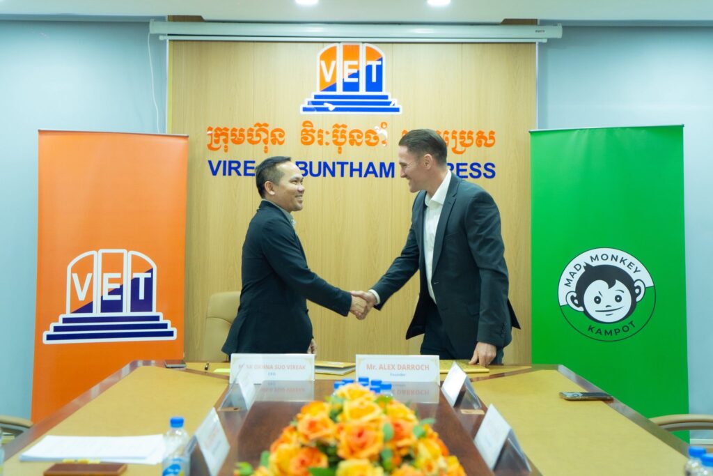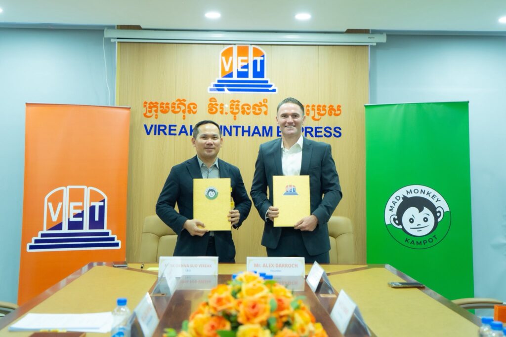 អ្នកឧកញ៉ា សួរ វីរៈ អញ្ជើញចុះ MOU រវាងក្រុមហ៊ុន វិរៈ ប៊ុនថាំ អិចប្រេស និងក្រុមហ៊ុន Mad Monkey គ្រោងបង្កើតសណ្ឋាគារថ្មីមួយ នៅខេត្តកំពត