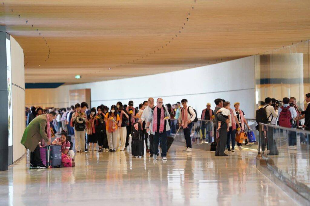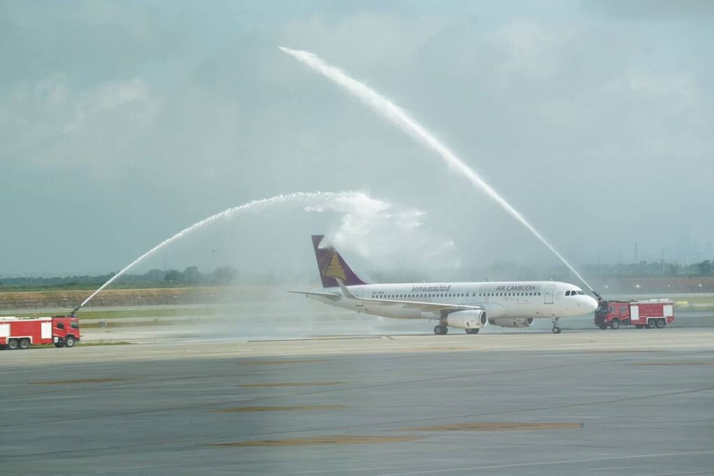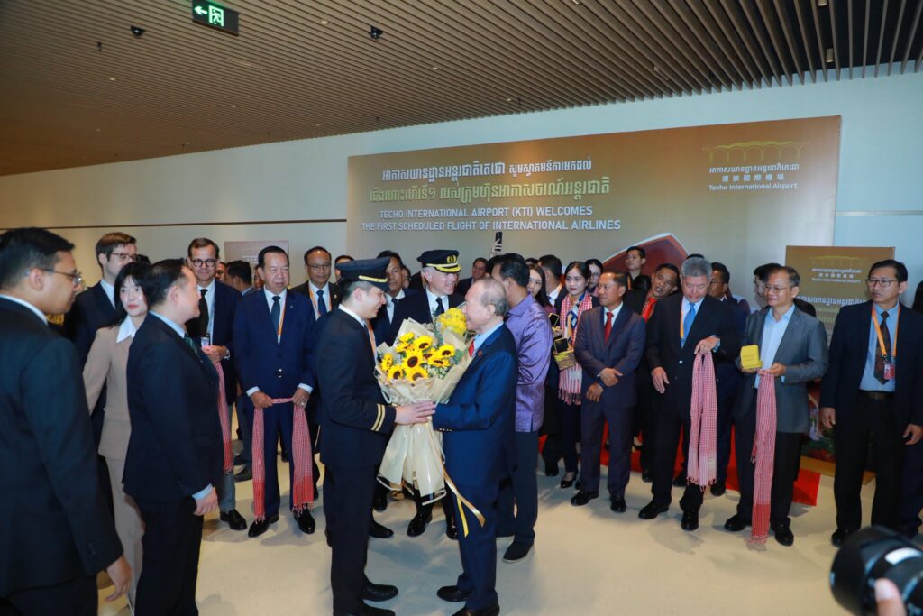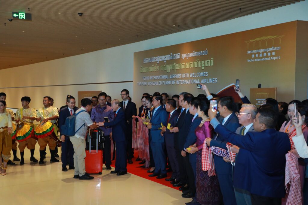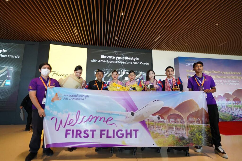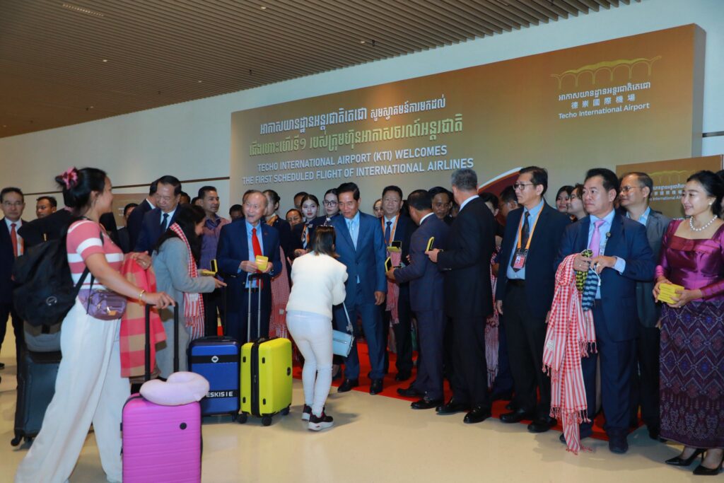 សូមជម្រាបថា ជើងហោះហើរដំបូងគេ ដែលបានចូលចតក្នុងអាកាសយានដ្ឋានថ្មីនេះ គឺក្រុមហ៊ុនអាកាសចរណ៍ជាតិ Air Cambodia ដឹកភ្ញៀវទេសចរមកពីប្រទេសចិន ហើយត្រូវបានទទួលស្វាគមន៍ ដោយលោកបណ្ឌិត ម៉ៅ ហាវណ្ណាល់ រដ្ឋមន្ត្រីទទួលបន្ទុក រដ្ឋលេខាធិការដ្ឋានអាកាសចរស៊ីវិល និងរដ្ឋមន្ត្រីក្រសួងទេសចរណ៍ លោក ហួត ហាក់ លោកអ្នកឧកញ៉ា ពុង ឃាវសែ និងថ្នាក់ដឹកនាំរាជធានី ខេត្ត ដែលមានការបាញ់ទឹកទទួលស្វាគមន៍យន្តហោះ ការលេងឆៃយាំ បំពាក់កម្រងផ្កា និងចែកវត្ថុអនុស្សាវរីយ៍ ដល់អ្នកដំណើរផងដែរ។