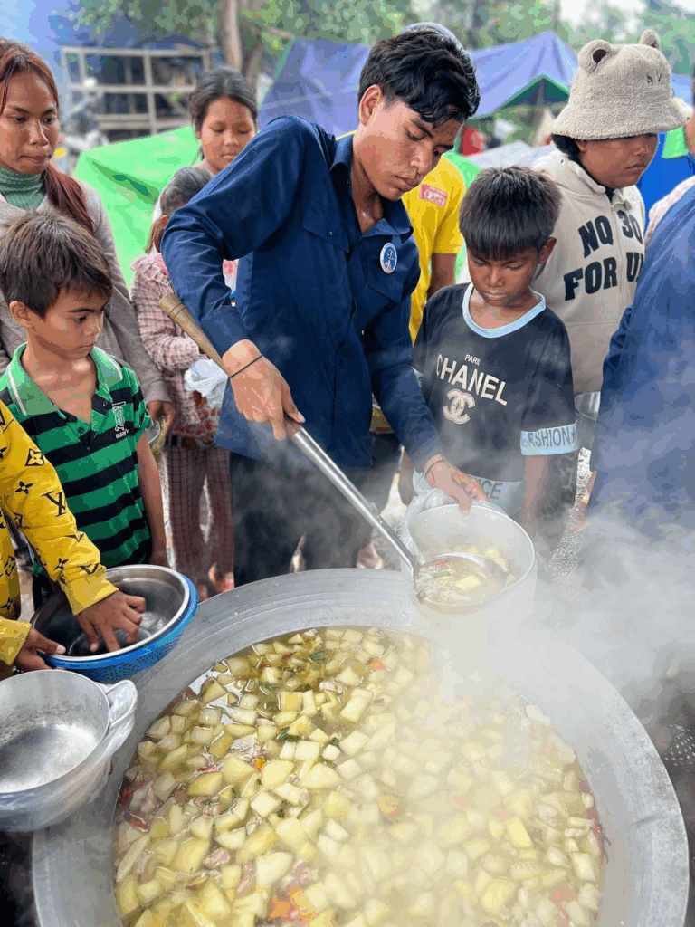 ប្រជាពលរដ្ឋភៀសសឹកដែលជម្លៀសពីតំបន់សមរភូមិជម្លោះប្រដាប់អាវុធកម្ពុជា-ថៃ ក្នុងខេត្តព្រះវិហារបន្តទទួលបានការរៀបចំផ្គត់ផ្គង់ម្ហូបពីក្រុមការងារសហព័ន្ធយុវជនបូជាការពារយុត្តិធម៌ បើទោះបីមានជនភៀសសឹកមួយចំនួនត្រឡប់ទៅកាន់លំនៅឋានបណ្តើរក៏ដោយ។