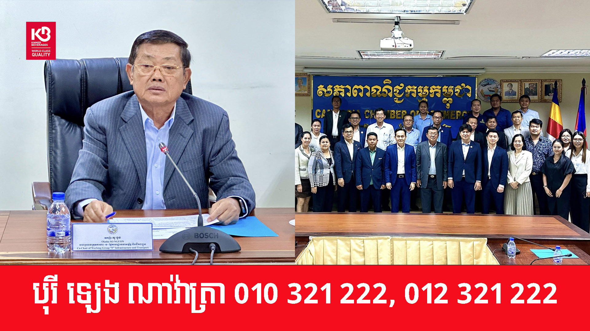 នារសៀលថ្ងៃសុក្រ ទី១២ ខែកញ្ញា ឆ្នាំ២០២៥ នៅអគ្គនាយកដ្ឋានសភាពាណិជ្ជកម្មកម្ពុជា មានរៀបចំកិច្ចប្រជុំក្រុមការងារផ្នែកឯកជន “ច” “ផ្នែកហេដ្ឋារចនាសម្ព័ន្ធ និងដឹកជញ្ជូន” នៃវេទិការាជរដ្ឋាភិបាល-ផ្នែកឯកជន ដែលដឹកនាំដោយ ឧកញ៉ា សូ ងួន សហប្រធានក្រុមការងារ “ច” តំណាងផ្នែកឯកជន។
