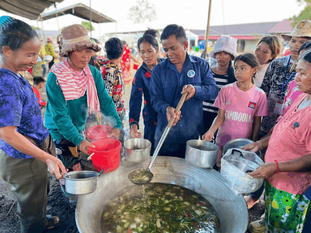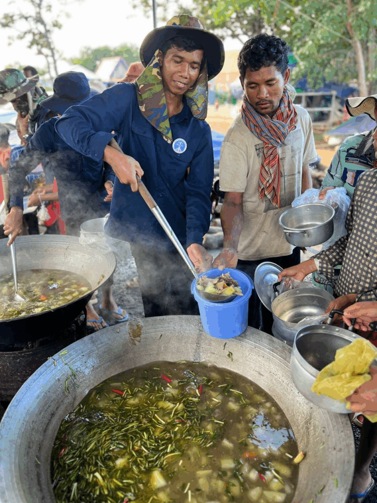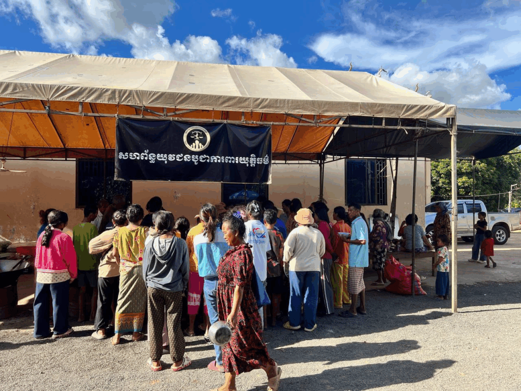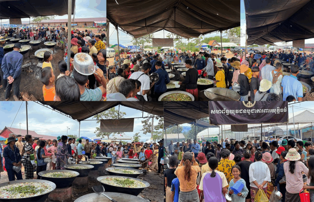 ថ្ងៃបិណ្ឌទី៨នេះ ប្រជាពលរដ្ឋភៀសសឹកដែលជម្លៀសពីតំបន់សមរភូមិជម្លោះប្រដាប់អាវុធកម្ពុជា-ថៃ ក្នុងខេត្តព្រះវិហារនៅតែបន្តទទួលបានការរៀបចំផ្គត់ផ្គង់ម្ហូបអាហារពីក្រុមការងារសហព័ន្ធយុវជនបូជាការពារយុត្តិធម៌។