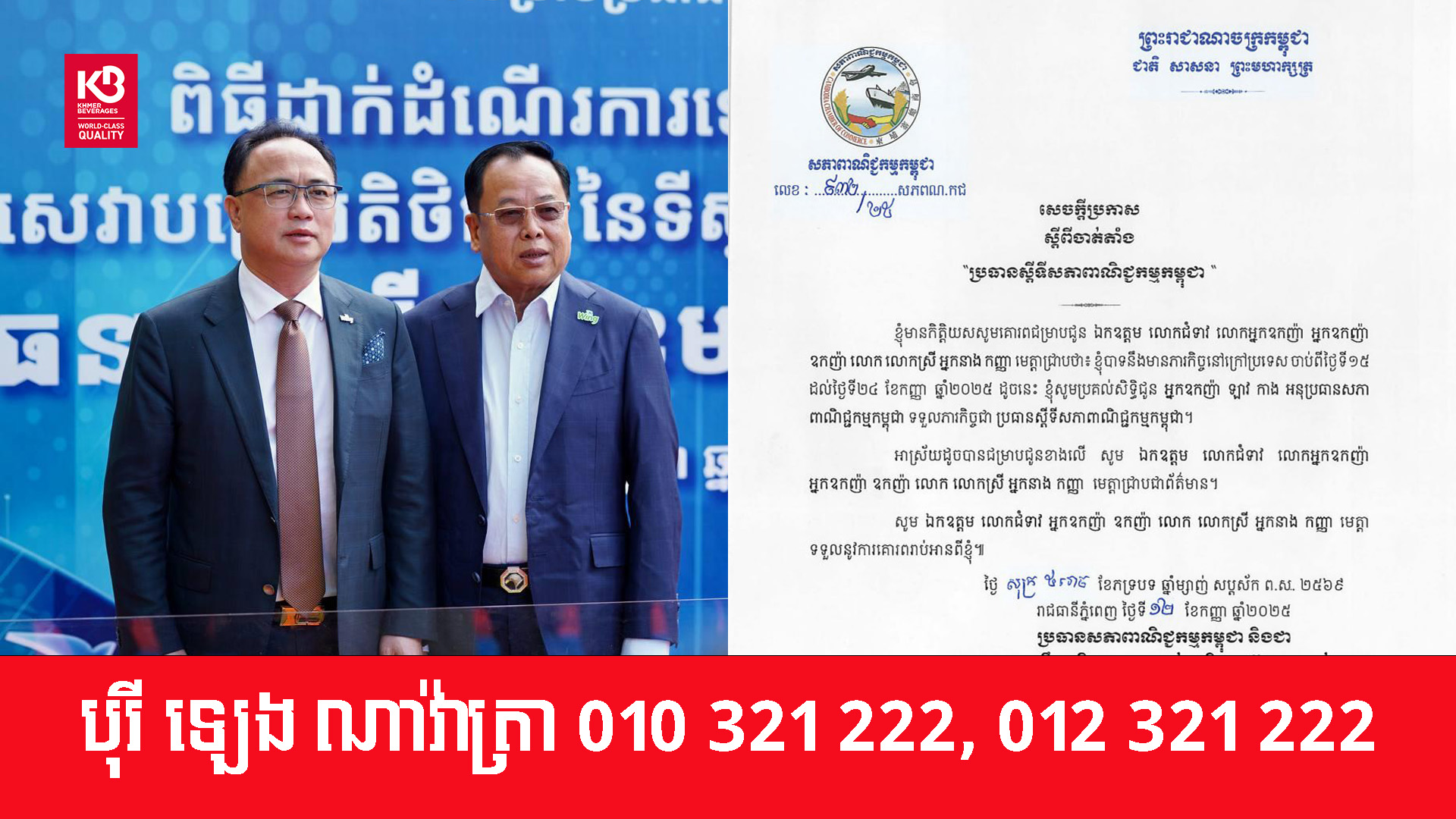 អ្នកឧកញ៉ា គិត ម៉េង ចេញសេចក្តីប្រកាសចាត់តាំង អ្នកឧកញ៉ា ឡាវ កាង ជាប្រធានស្តីទីសភាពាណិជ្ជកម្មកម្ពុជា