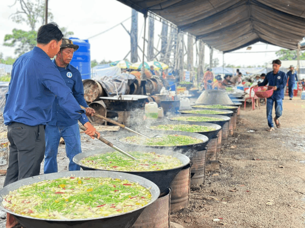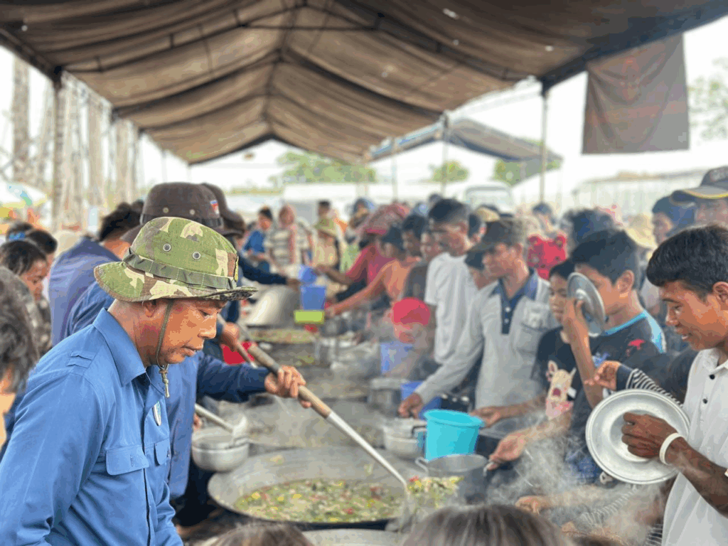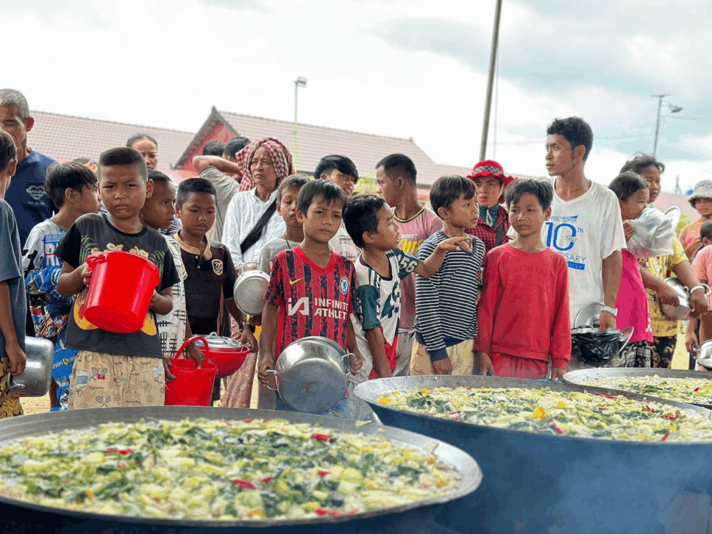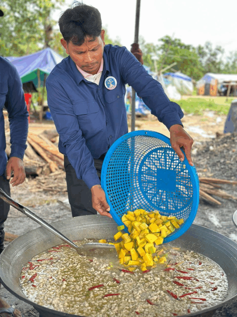 សូមជម្រាបជូនថា ចាប់តាំងពីផ្ទុះអាវុធតាមព្រំដែនកម្ពុជា-ថៃ នៅថ្ងៃទី២៤ ខែកក្កដា អ្នកឧកញ៉ា ឡេង ណាវ៉ាត្រា ក្នុងនាមប្រធានសហព័ន្ធបានដឹកនាំក្រុមយុវជនរៀបចំផ្គត់ផ្គង់ម្ហូបអាហារជូនដល់ប្រជាពលរដ្ឋភៀសសឹកនៅក្នុងខេត្តឧត្តរមានជ័យ និងខេត្តព្រះវិហារ ដែលកាលណោះមានពលរដ្ឋជិត ៧ម៉ឺននាក់បានមកទទួលម្ហូមផ្គត់ផ្គង់ពីក្រុមការងារសហព័ន្ធយុវជនបូជាការពារយុត្តិធម៌ ចំនួន ២ពេលជារៀងរាល់ថ្ងៃ៕