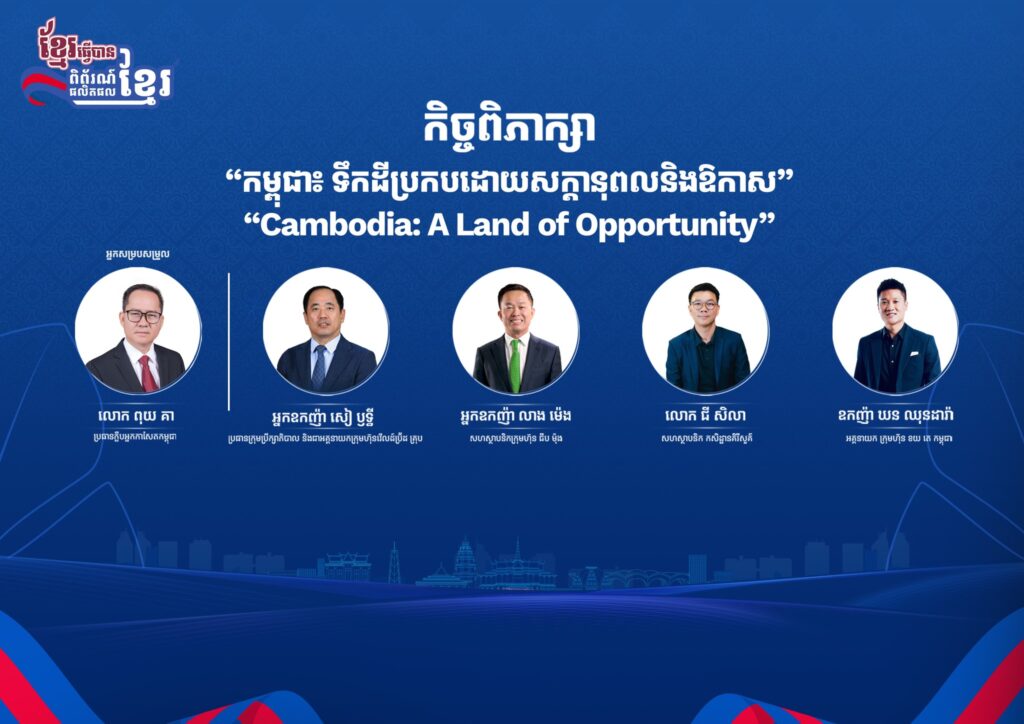 ក្នុងកម្មវិធីខាងលើនេះ អ្នកឧកញ៉ា សៀ ឬទ្ធី ប្រធានក្រុមប្រឹក្សាភិបាល និងជាអគ្គនាយកក្រុមហ៊ុន វើលដ៏ប្រីដ គ្រុប, អ្នកឧកញ៉ា លាង ម៉េង សហស្ថាបនិកក្រុមហ៊ុន ជីប ម៉ុង, ឧកញ៉ា ឃន ឈុនដារ៉ា អគ្គនាយកក្រុមហ៊ុន ខយ តេ កម្ពុជា និងលោក ជី សិលា សហស្ថាបនិក កសិដ្ឋានគិរីសួគ៌ស នឹងចូលរួមបង្ហាញវត្តមាន ព្រមទាំងចែករំលែកទស្សនៈ និងបទពិសោធន៍ ជុំវិញប្រធានបទ «កម្ពុជា៖ ទឹកដីប្រកបដោយសក្តានុពលនិងឱកាស (Cambodia: A Land of Opportunity)» នាវេលាម៉ោង០២:០០នាទីរសៀល ដល់ម៉ោង ០៣:៣០នាទីរសៀល ថ្ងៃទី២៨ ខែកញ្ញា ឆ្នាំ២០២៥។ នេះជាវេទិកាដ៏ល្អ ដែលផ្ដល់ឱកាសដល់អ្នកចូលរួមបានឈ្វេងយល់ និងទទួលបាននូវបទពិសោធថ្មីៗពីសំណាក់វាគ្មិន និងជាអ្នកជំនួញកំពុងលេចធ្លោរនៅកម្ពុជា។