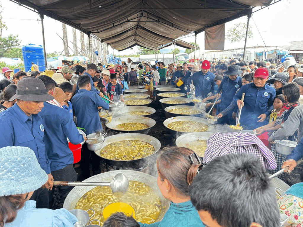ការរៀបចំផ្គត់ផ្គង់ម្ហូបជូនជនភៀសសឹករបស់ក្រុមការងារសហព័ន្ធយុវជនបូជាការពារយុត្តិធម៌ ធ្វើឡើងក្រោមកិច្ចសហការជាមួយឯកឧត្តមកិត្តិសង្គហបណ្ឌិត គន់ គីម ទេសរដ្ឋមន្ត្រី អនុប្រធានទី១ គណៈកម្មាធិការជាតិគ្រប់គ្រងគ្រោះមហន្តរាយ និងឯកឧត្តម គីម រិទ្ធី អភិបាលខេត្តព្រះវិហារ។