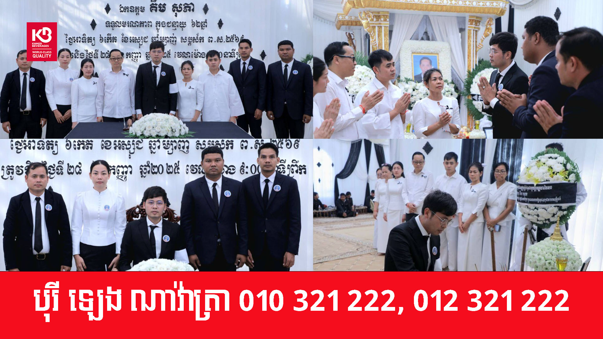 នៅក្នុងសមានទុក្ខដ៏ក្រៀមក្រំនេះ លោកឧកញ៉ា ឡេង និមល និងលោកជំទាវឧកញ៉ាបណ្ឌិត បាននាំមកនូវសារចូលរួមរំលែកមរណទុក្ខដោយក្តីស្រណោះ និងអាឡោះអាល័យជាមួយ ឯកឧត្តមបណ្ឌិត គឹម សន្តិភាព និង លោកជំទាវ ព្រមទាំងក្រុមគ្រួសារ និងញាតិមិត្តជិតឆ្ងាយទាំងអស់នៃសពចំពោះការបាត់បង់នូវបង ប្រុស បង្កើត ដែលជាទីស្រឡាញ់ដោយក្តីសង្វេគជាទីបំផុត និងសូមឧទ្ទិសបួងសួងដល់ដួងវិញ្ញាណក្ខន្ធ ឯកឧត្តម គឹម សុភា សូមបានចាប់បដិសន្ធិក្នុងសុគតិភពគ្រប់ៗជាតិ កុំបីឃ្លៀងឃ្លាតឡើយ៕