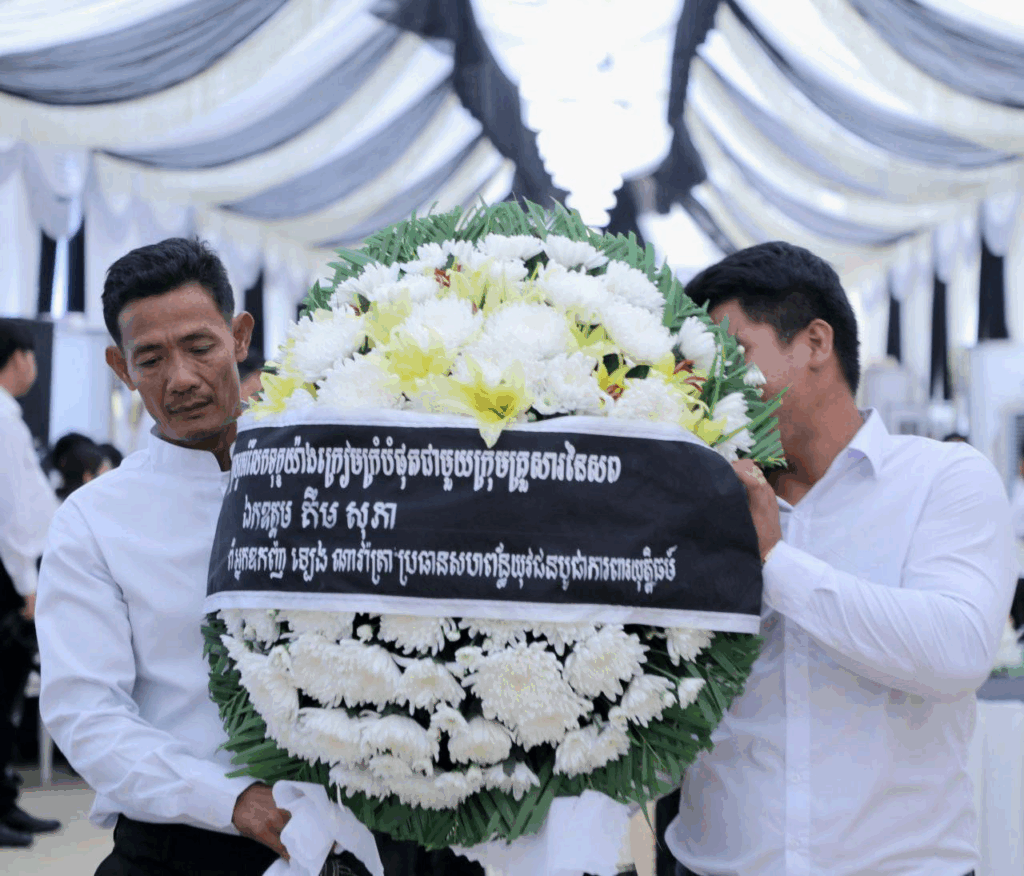 ឧកញ៉ា ឡេង និមល និងលោកជំទាវឧកញ៉ាបណ្ឌិត ឡេង បញ្ចពណ៌ តំណាងអ្នកឧកញ៉ា ឡេង ណាវ៉ាត្រា អញ្ជើញដាក់កម្រងផ្កាគោរពវិញ្ញាណក្ខន្ធសពឯកឧត្តម គឹម សុភា ត្រូវជាបងបង្កើតឯកឧត្តមបណ្ឌិត គឹម សន្តិភាព