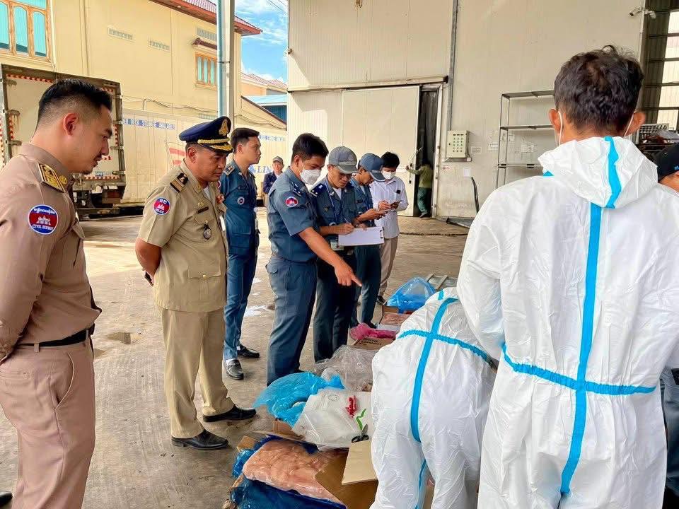 នៅព្រឹកថ្ងៃទី៥ ខែតុលា ឆ្នាំ២០២៥នេះ សមត្ថកិច្ចចម្រុះរួមមានមន្រ្តីគយចល័តតំបន់១ មន្ត្រី កបប មន្ត្រីនគរបាលសេដ្ឋកិច្ចរាជធានីភ្នំពេញ និងមន្រ្តីមូលដ្ឋាន បានចុះត្រួតពិនិត្យឃ្លាំងរបស់ ឧកញ៉ា អុឹម សុផាន់ណារិទ្ធ ហៅស្រីទូច ដែលនាំជង្គង់មាន់ ស្លាបមាន់ ជើងមាន់មកពីប្រទេសថៃ មានទីតាំងស្ថិតនៅ សង្កាត់ច្រាំងចំរេះ១ ខណ្ឌឬស្សីកែវ រាជធានីភ្នំពេញ។