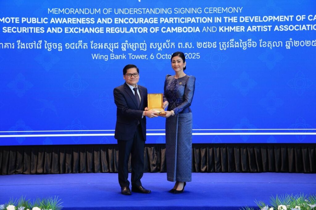លោកជំទាវអ្នកឧកញ៉ា ម៉ៅ ចំណាន គិតម៉េង ប្រធានសមាគមសិល្បករខ្មែរ នាថ្ងៃទី៦ ខែតុលា ឆ្នាំ២០២៥ បានចុះហត្ថលេខាលើអនុស្សរណៈនៃការយោគយល់គ្នា (MOU) ជាមួយនិយ័តករមូលបត្រកម្ពុជា ស្តីពីកិច្ចសហប្រតិបត្តិការលើការលើកកម្ពស់ ការយល់ដឹង និងជំរុញការចូលរួមអភិវឌ្ឍន៍វិស័យមូលបត្រនៅកម្ពុជា នៅអគារ ធនាគារ វីងថៅវ័រ។