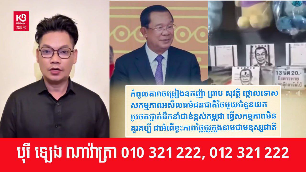 កំពូលតារាចម្រៀងឧកញ៉ា ព្រាប សុវត្ថិ ថ្កោលទោសសកម្មភាពអសីលធម៌ជនជាតិថៃមួយចំនួនយករូបថតថ្នាក់ដឹកនាំជាន់ខ្ពស់កម្ពុជា ធ្វើសកម្មភាពមិនគួរគប្បី ជាអំពើខ្វះភាពថ្លៃថ្នូរក្នុងនាមជាមនុស្សជាតិ