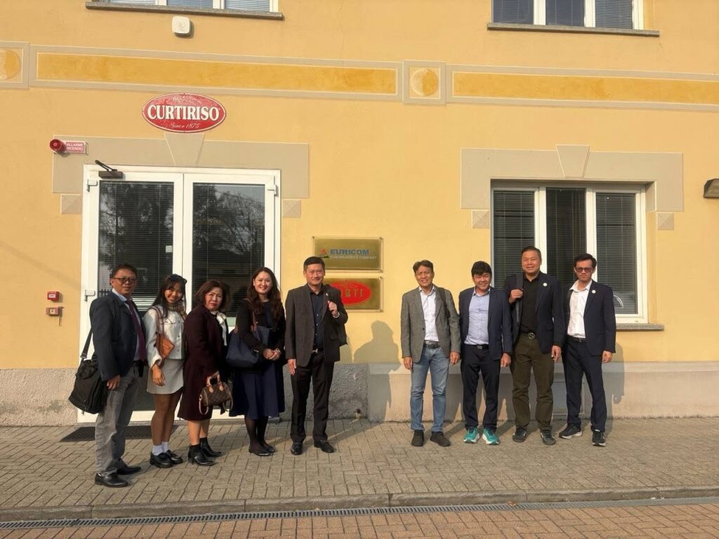 ឧកញ៉ា ឡាយ ឈុនហួ ប្រធានសហព័ន្ធស្រូវអង្ករកម្ពុជា បានអញ្ជើញដឹកនាំសមាជិកចំនួន ៦ ក្រុមហ៊ុន ជួបពិភាក្សាជាមួយក្រុមហ៊ុន Euricom Group នៅក្រុង Valle Lomellina ប្រទេសអ៊ីតាលី នៅថ្ងៃទី១០ ខែតុលា ឆ្នាំ២០២៥។