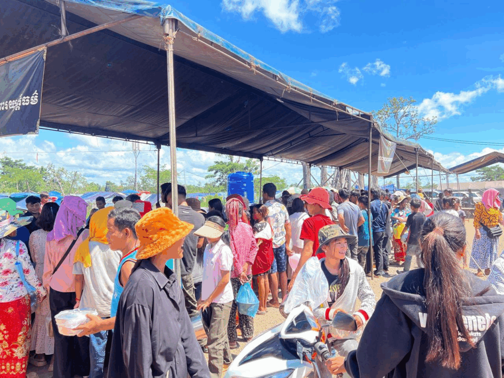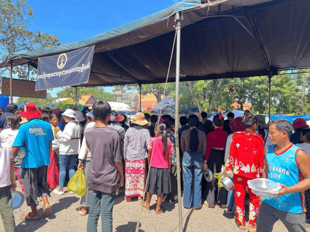 ជនភៀសសឹកក្នុងខេត្តព្រះវិហារ ដែលជម្លៀសពីតំបន់ជម្លោះព្រំដែនកម្ពុជា-ថៃ គោលដៅជំរំវត្តពោធិ៍ ៥០០០ដើម បន្តទទួលម្ហូបអាហារចំនួន ២ពេលប្រចាំថ្ងៃដែលផ្គត់ផ្គង់ពីក្រុមការងារសហព័ន្ធយុវជនបូជាការពារយុត្តិធម៌។