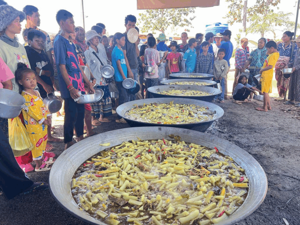 ជនភៀសសឹកខេត្តព្រះវិហារជំរំវត្តពោធិ៍ ៥០០០ដើម ចំនួន ១,៧៥០គ្រួសារ ស្មើ ៥,៧៣២នាក់ ក្រុមការងារសហព័ន្ធយុវជនបូជាការពារយុត្តិធម៌ ដឹកនាំអ្នកឧកញ៉ា ឡេង ណាវ៉ាត្រា បន្តរៀបចំម្ហូបផ្គត់ផ្គង់ប្រចាំថ្ងៃចំនួន ២ពេល