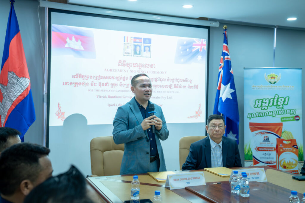 អ្នកឧកញ៉ា សួរ វីរៈ អគ្គនាយកក្រុមហ៊ុន វិរៈប៊ុនថាំ អេចប្រេស នៅព្រឹកថ្ងៃសៅរ៍ ទី២៥ ខែតុលា ឆ្នាំ២០២៥នេះ បានអញ្ជើញជាអធិបតីភាពក្នុងពិធីចុះហត្ថលេខាលើកិច្ចព្រមព្រៀងសហការផ្គត់ផ្គង់ និងនាំចេញ អង្ករផ្ការំដួល និងផ្ការំដួលសរីរាង្គ រវាងក្រុមហ៊ុន វិរៈ ប៊ុនថាំ គ្រុប (Vireak Buntham Group) និងក្រុមហ៊ុន ស៊ីអេជី ហូលសេលឡឺ ភីធីវ៉ាយ អិលធីឌី (CAG Wholesaler Pty Ltd) ដើម្បីនាំអង្ករខ្មែរ ទៅលក់នៅទីផ្សារប្រទេសអូស្ត្រាលី។