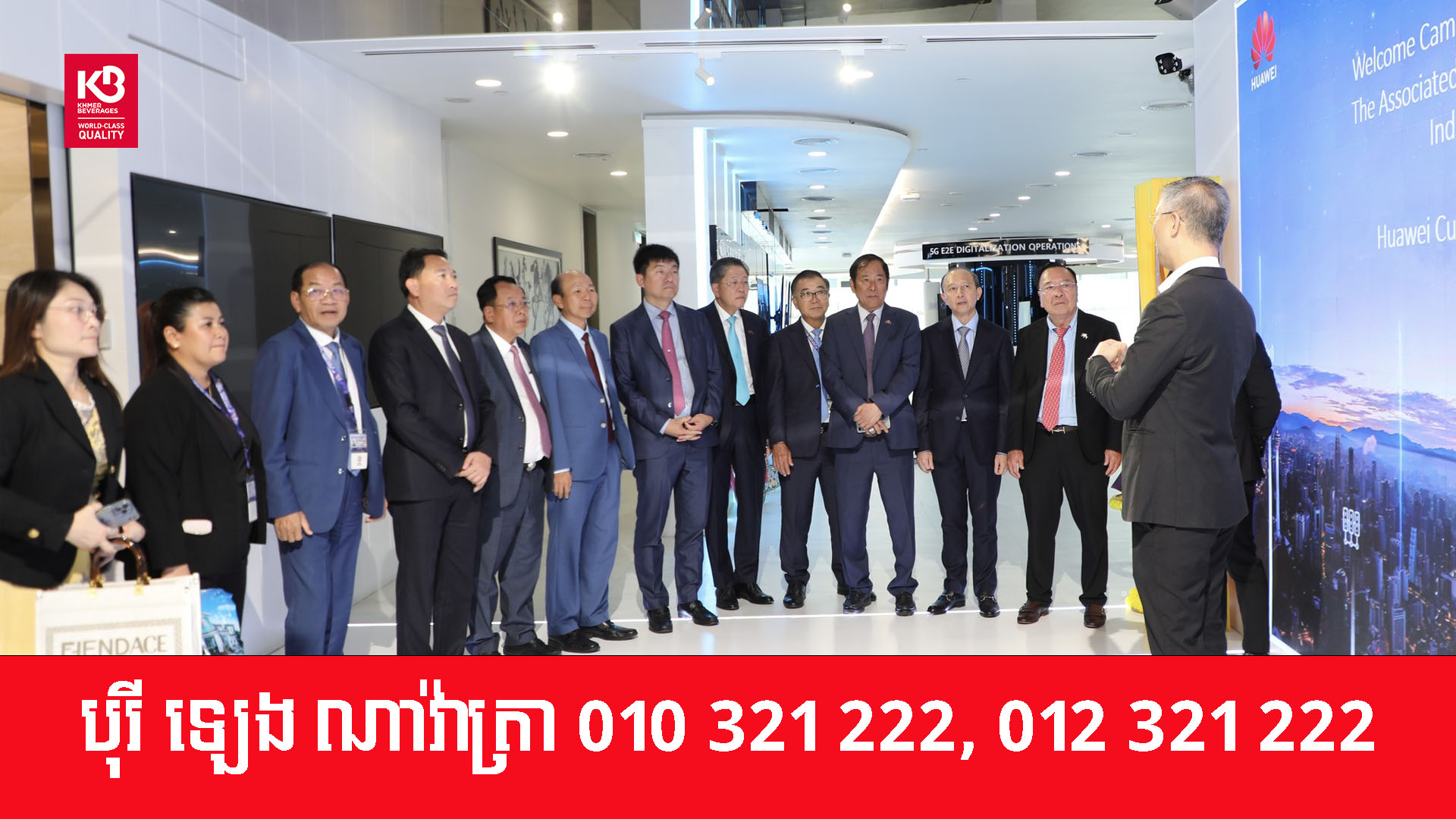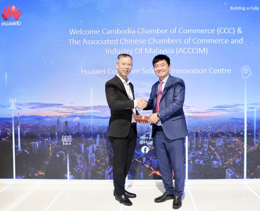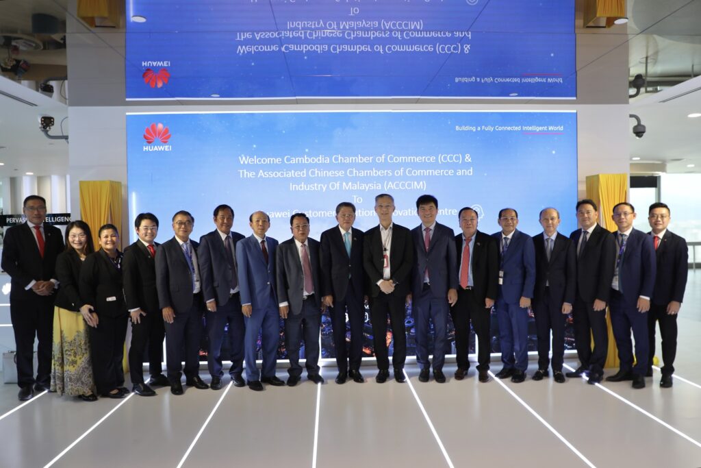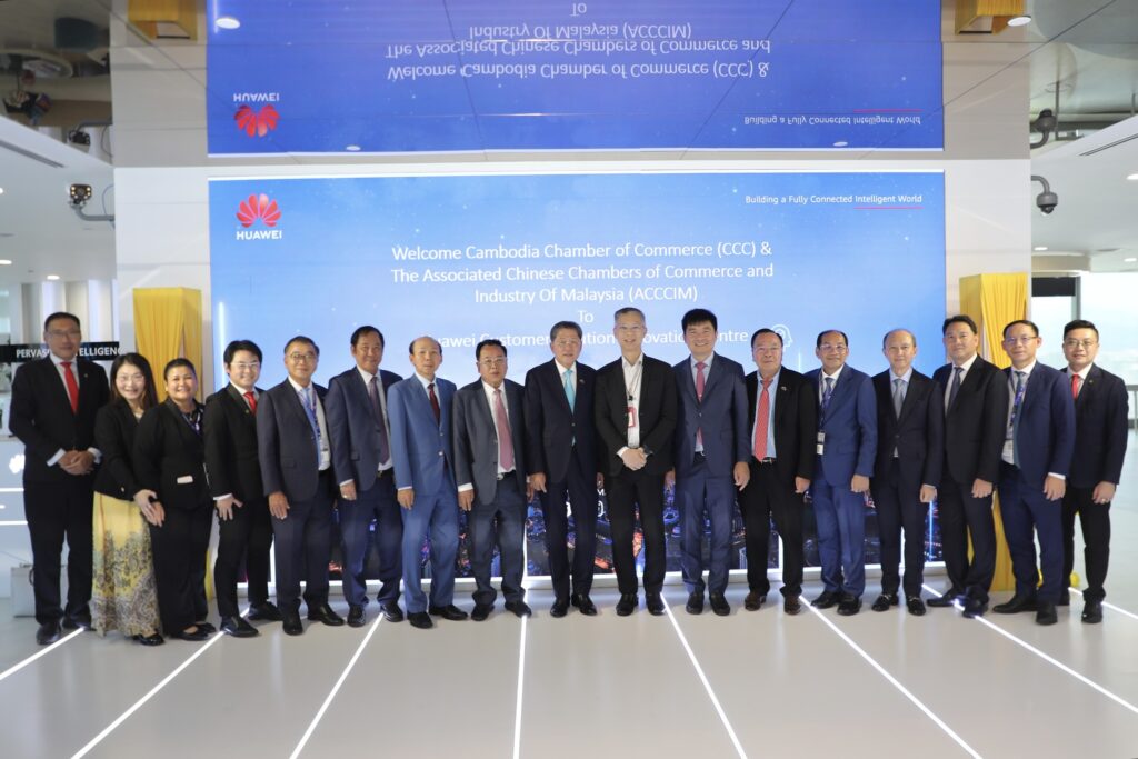ទីក្រុងគូឡាឡាំពួ ប្រទេសម៉ាឡេស៊ី៖ ឧកញ៉ា សុខ ពិសិដ្ឋ អនុប្រធានសភាពាណិជ្ជកម្មកម្ពុជា តំណាង អ្នកឧកញ៉ា គិត ម៉េង ប្រធានសភាពាណិជ្ជកម្មកម្ពុជា និងជាប្រធានក្រុមប្រឹក្សាពិគ្រោះយោបល់ធុរកិច្ចអាស៊ានសម្រាប់កម្ពុជា បានដឹកនាំសមាជិកសភាពាណិជ្ជកម្មកម្ពុជា ធ្វើទស្សនកិច្ច នៅមជ្ឈមណ្ឌលនវានុវត្តន៍របស់ក្រុមហ៊ុនហួវៃ (Huawei) នៅប្រទេសម៉ាឡេស៊ី នារសៀលថ្ងៃទី ២៧ ខែ តុលា ឆ្នាំ២០២៥។
