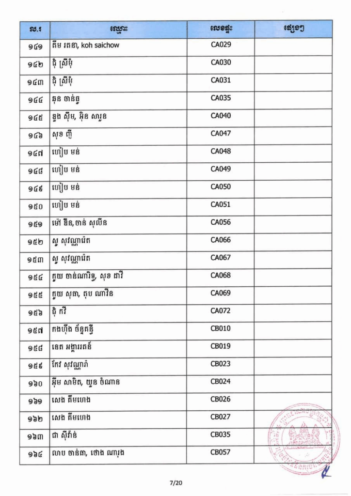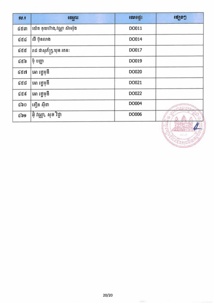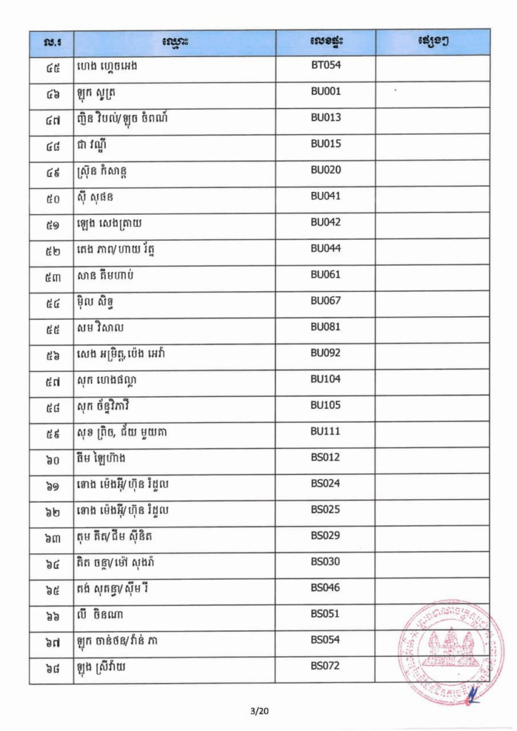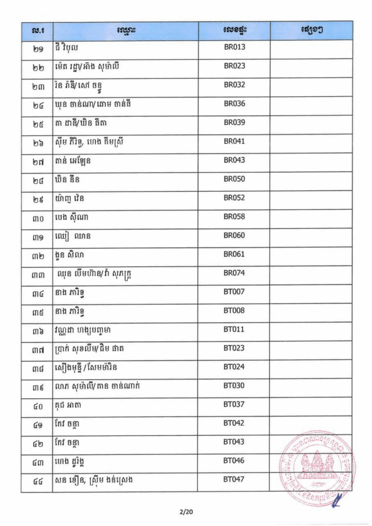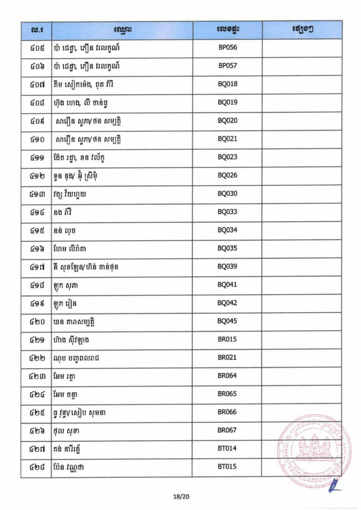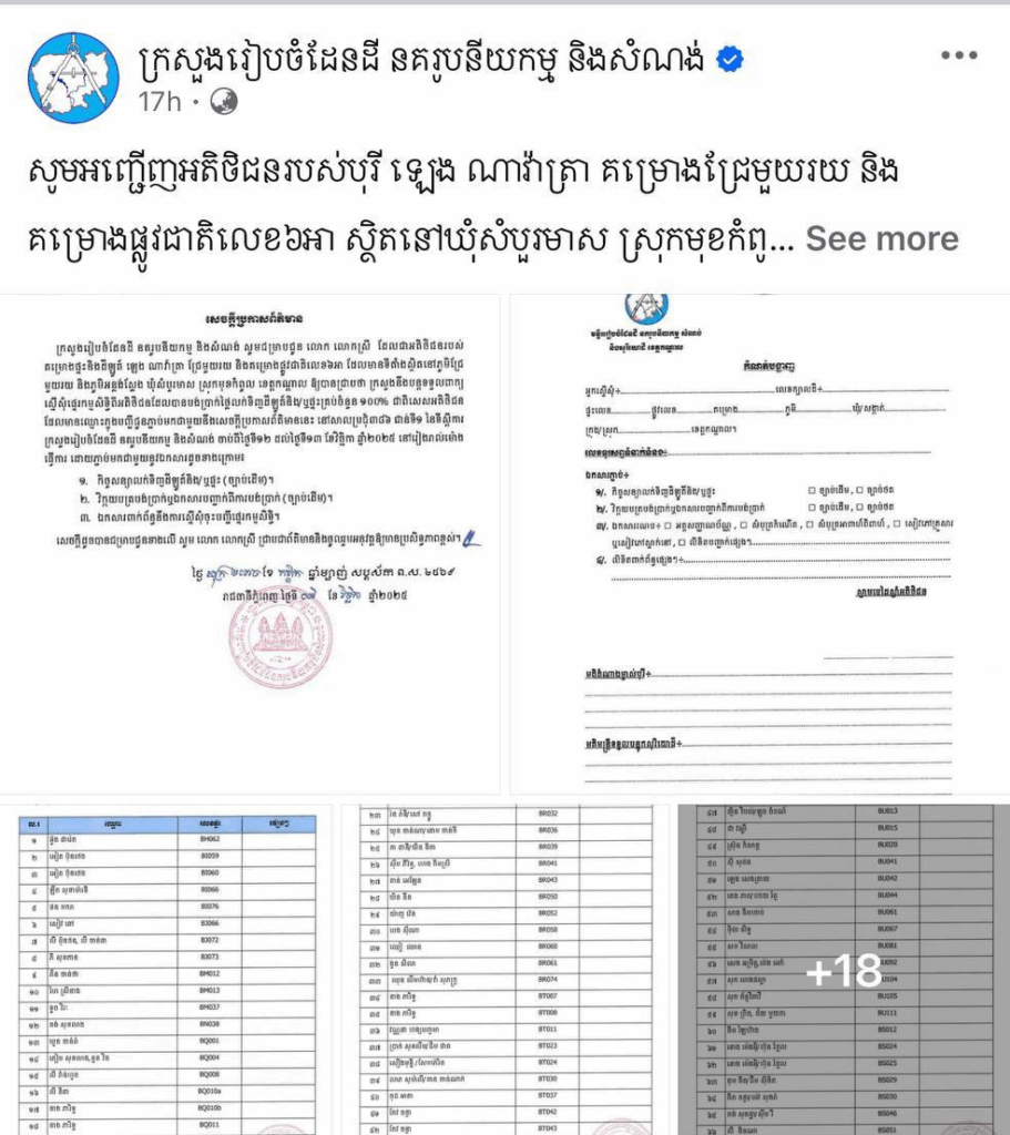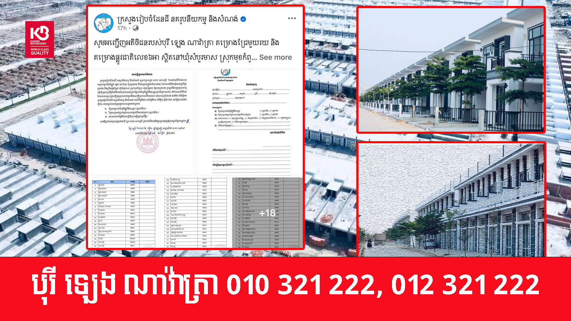 ក្រសួងរៀបចំដែនដី នគរូបនីយកម្ម និងសំណង់ កាលពីថ្ងៃទី០៧ ខែវិច្ឆិកា ឆ្នាំ២០២៥ បានប្រកាសឲ្យអតិថិជនដែលបានបង់ប្រាក់ថ្លៃលក់ទិញដីឡូត៍និង/ឬផ្ទះគ្រប់ចំនួន ១០០% ជាពិសេសអតិថិជន ដែលមានឈ្មោះក្នុងបញ្ជីចំនួន៤៦១ របស់គម្រោងផ្ទះនិងដីឡូត៍ ឡេង ណាវ៉ាត្រា ជ្រែមួយរយ និងគម្រោងផ្លូវជាតិលេខ៦អា មកដាក់ពាក្យស្នើសុំផ្ទេរកម្មសិទ្ធិ។