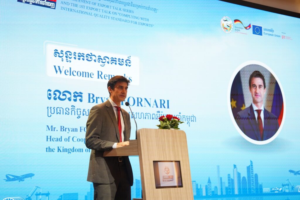 នាព្រឹកថ្ងៃទី១៤ ខែវិច្ឆិកា ឆ្នាំ២០២៥ សភាពាណិជ្ជកម្មកម្ពុជា បានរៀបចំពិធីសម្ពោធជាស៊េរី “កិច្ចសន្ទនាការ​នាំចេញ”  ក្រោមប្រធានបទ “អនុលោមភាពតាមស្តង់ដារគុណភាពអន្តរជាតិដើម្បីការនាំចេញ” ដែលមានការ​គាំទ្រដោយសហភាពអឺរ៉ុបប្រចាំកម្ពុជា និងទីភ្នាក់ងារអាល្លឺម៉ង់សម្រាប់កិច្ចសហប្រតិបត្តិការអន្តរជាតិ (GIZ) ប្រចាំកម្ពុជា ក្រោមគម្រោង EU-German GATE។