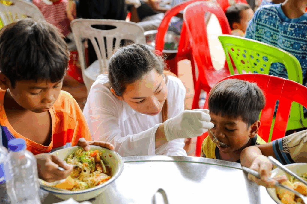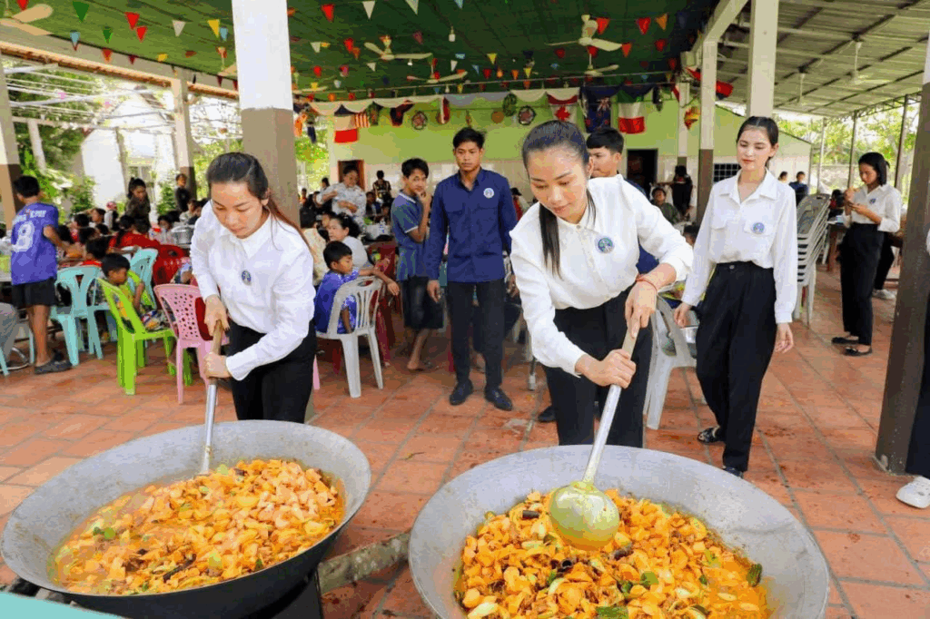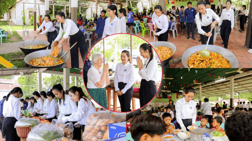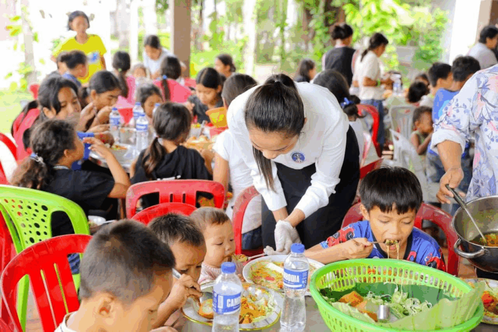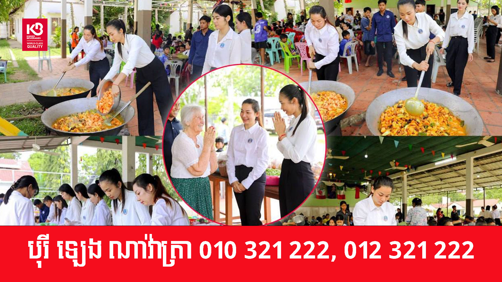 និងធ្វើសម្លការីនំប៉័ង និងនំបញ្ចុក ២ខ្ទះត្នោត ជូនចាស់ជរា និងកុមារកំព្រាចំនួន ២៨៨នាក់ នៅអង្គការសង្គ្រោះជនអស់សង្ឃឹម ស្ថិតនៅភូមិលិចវត្ត សង្កាត់កំបូល ខណ្ឌពោធិ៍សែនជ័យ រាជធានីភ្នំពេញ កាលពីថ្ងៃអាទិត្យ ទី២៣ ខែវិច្ឆិកា ឆ្នាំ២០២៥។