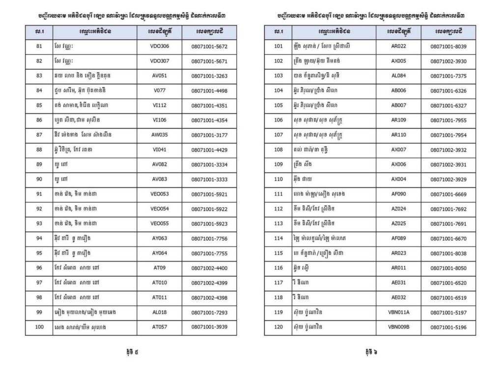 ទទឹមនឹងនេះ ក្រសួងក៏សូមអញ្ជើញ លោក លោកស្រី ដែលជាអតិថិជនរបស់គម្រោងផ្ទះនិងដីឡូត៍ ឡេង ណាវ៉ាត្រា ជ្រែមួយរយ និងគម្រោងផ្លូវជាតិលេខ៦អា ដែលមានឈ្មោះក្នុងបញ្ជីជូនភ្ជាប់មកជាមួយ ចូលរួមកម្មវិធីសំណេះសំណាល និងចែកបណ្ណកម្មសិទ្ធិ នៅថ្ងៃទី២៧ ខែវិច្ឆិកា ឆ្នាំ២០២៥ វេលាម៉ោង ៧:៣០នាទីព្រឹក នៅសាលសន្និបាត២០២១ ជាន់ទី២ នាទីស្តីការក្រសួង ដ.ន.ស. ក្រោមអធិបតីភាព ឯកឧត្តម សាយ សំអាល់ ឧបនាយករដ្ឋមន្ត្រី រដ្ឋមន្ត្រីក្រសួងរៀបចំដែនដី នគរូបនីយកម្ម និងសំណង់។