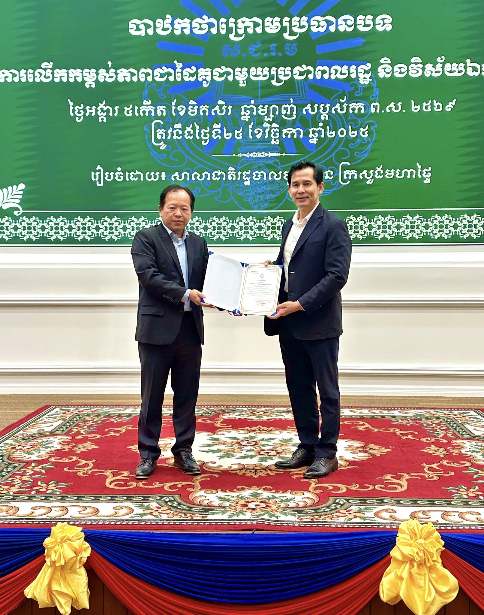 ឧកញ៉ាបណ្ឌិត តាន់ មុនីវណ្ណ អនុប្រធានសភាពាណិជ្ជកម្មកម្ពុជា និងជាសហប្រធានក្រុមការងារ “ឌ” ផ្នែកឯកជន នៃវេទិការាជរដ្ឋាភិបាល-ផ្នែកឯកជន នារសៀលថ្ងៃអង្គារ ទី២៥ ខែវិច្ឆិកា ឆ្នាំ២០២៥ បានអញ្ជើញចូលរួមថ្លែង​បាឋកថា ក្នុងកម្មវិធីបណ្តុះបណ្តាល ក្រោមប្រធានបទ “ការលើកកម្ពស់ភាពជាដៃគូជាមួយប្រជាពលរដ្ឋ និង​វិស័យឯកជន” ដែលជាការរៀបចំដោយ សាលាជាតិរដ្ឋបាលមូលដ្ឋាន នៅទីស្តីការក្រសួងមហាផ្ទៃ។