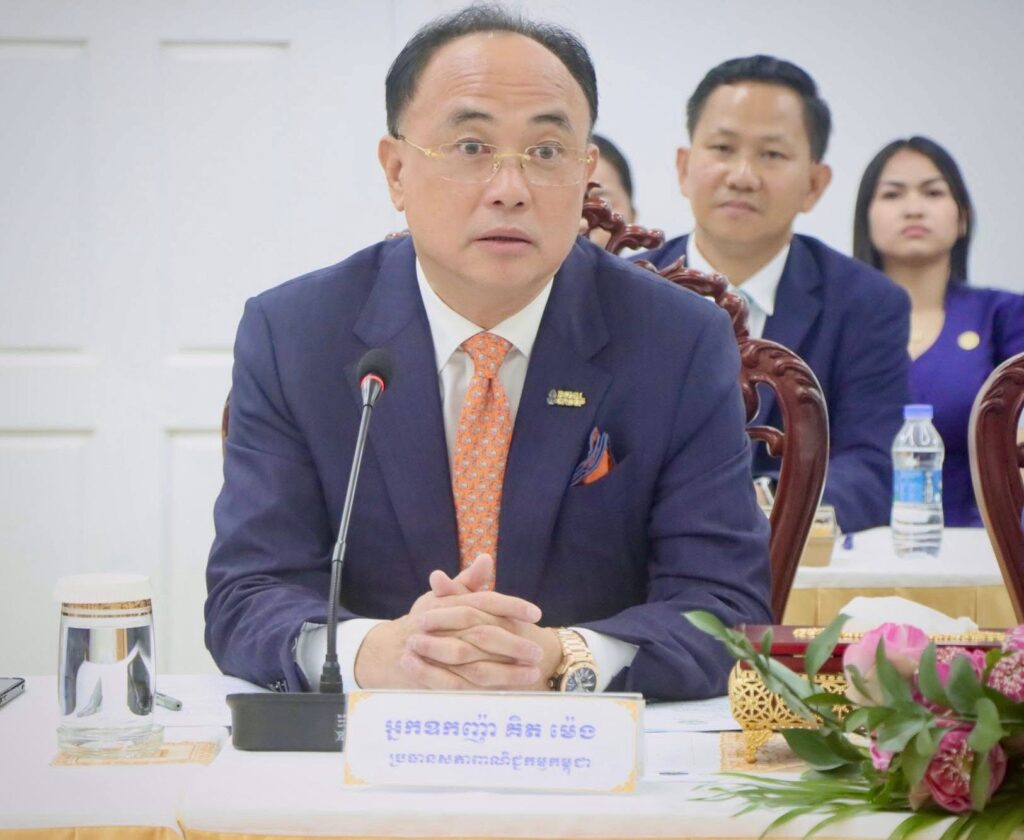 នារសៀលថ្ងៃសុក្រ ទី០៥ ខែធ្នូ ឆ្នាំ២០២៥ នៅទីស្តីការក្រសួងទេសចរណ៍, អ្នកឧកញ៉ា គិត ម៉េង ប្រធានសភាពាណិជ្ជកម្មកម្ពុជា និងជាប្រធានគណៈកម្មការសម្របសម្រួលក្រុមការងារផ្នែកឯកជន សម្រាប់យន្តការវេទិការាជរដ្ឋាភិបាល-ផ្នែកឯកជន បានអញ្ជើញជាអធិបតីភាពក្នុងកិច្ចប្រជុំក្រុមការងារ “ខ” “ផ្នែកទេសចរណ៍” នៃវេទិការរាជរដ្ឋាភិបាល-ផ្នែកឯកជន ក្រោមប្រធានបទ៖ ការអនុវត្តសាកល្បងការលើកលែងទិដ្ឋាការសម្រាប់ភ្ញៀវទេសចរណ៍ចិន ឆ្នាំ២០២៦ ដែលដឹកនាំដោយសហប្រធានក្រុមការងារទាំងពីរគឺ ឯកឧត្តម ហួត ហាក់ រដ្ឋមន្ត្រីក្រសួងទេសចរណ៍ និងជាសហប្រធានក្រុមការងារ “ខ” តំណាងផ្នែករដ្ឋាភិបាល និង ឧកញ៉ា លូ ម៉េង សហប្រធានក្រុមការងារ “ខ” តំណាងផ្នែកឯកជន។
